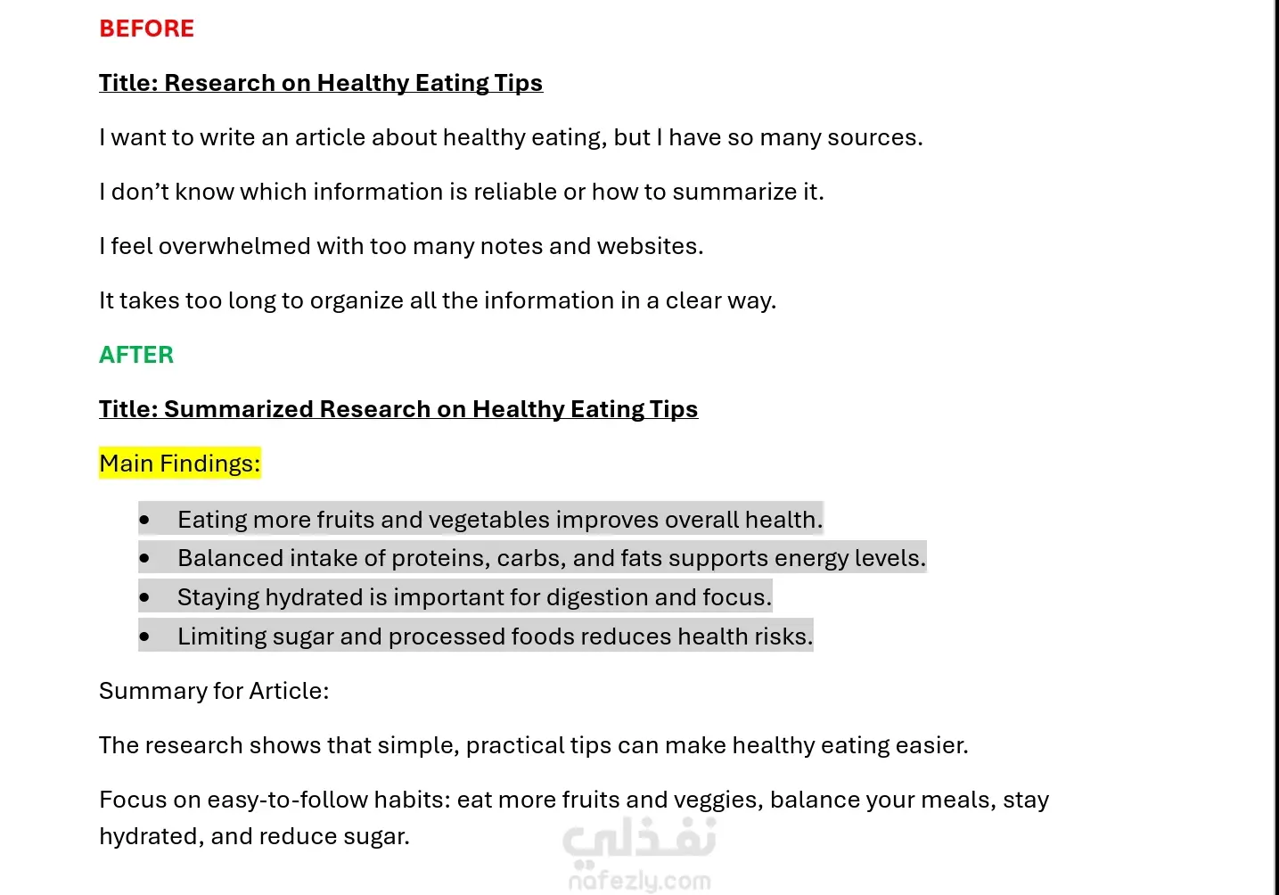أنا بساعدك تجمع المعلومات الصحيحة وتلخصها بشكل واضح باستخدام أدوات الذكاء الاصطناعي.
