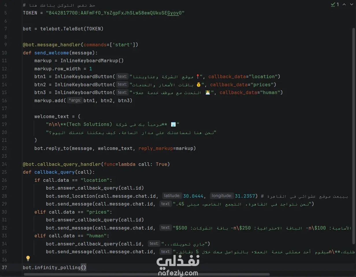 تطوير بوت تليجرام متقدم للرد الآلي وإدارة الخدمات