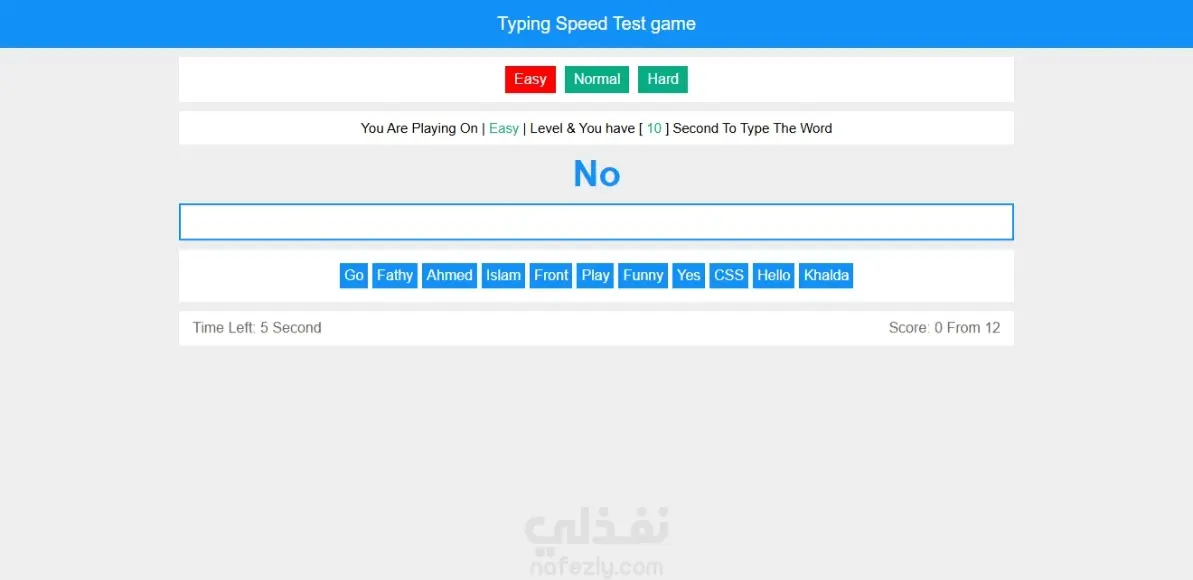 نظام النقاط (Scoring): تتبع عدد الكلمات الصحيحة التي تمت كتابتها مقابل إجمالي الكلمات (مثلاً: Score 0 From 12).