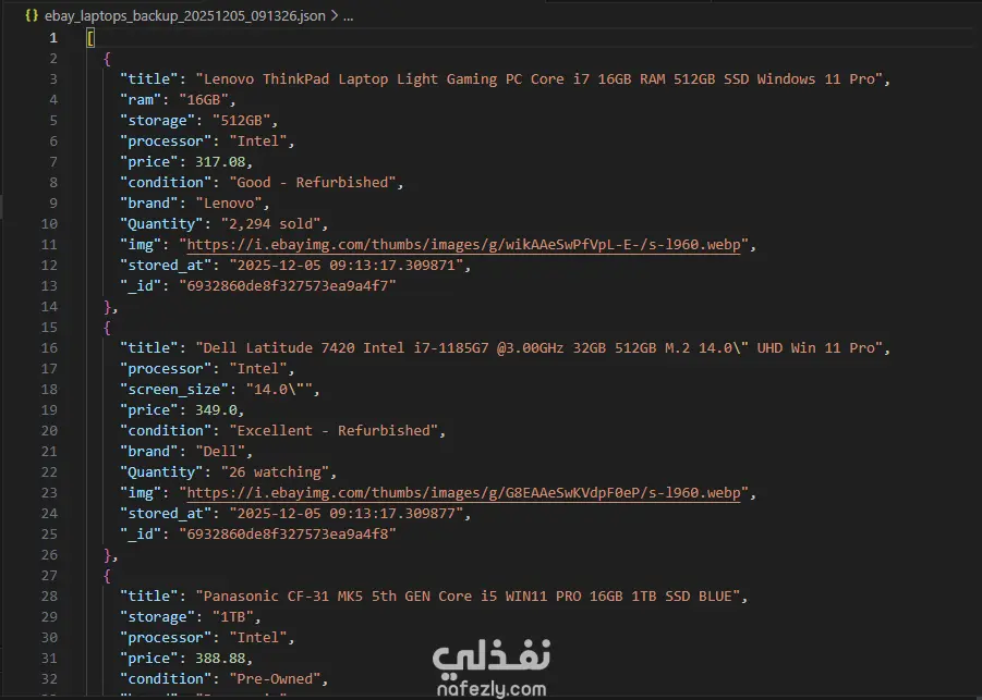 - جمع تلقائي للبيانات: كل يوم بيتم سحب أكتر من 150 إعلان للابتوبات على eBay