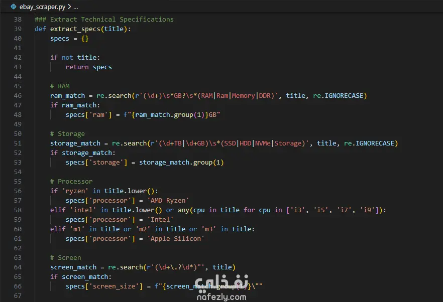 - معالجة البيانات: تنظيفها، توحيدها، واستخراج مواصفات مهمة زي RAM، Storage، CPU…