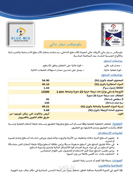 كتالوج شركة بلو ميكس للدهانات