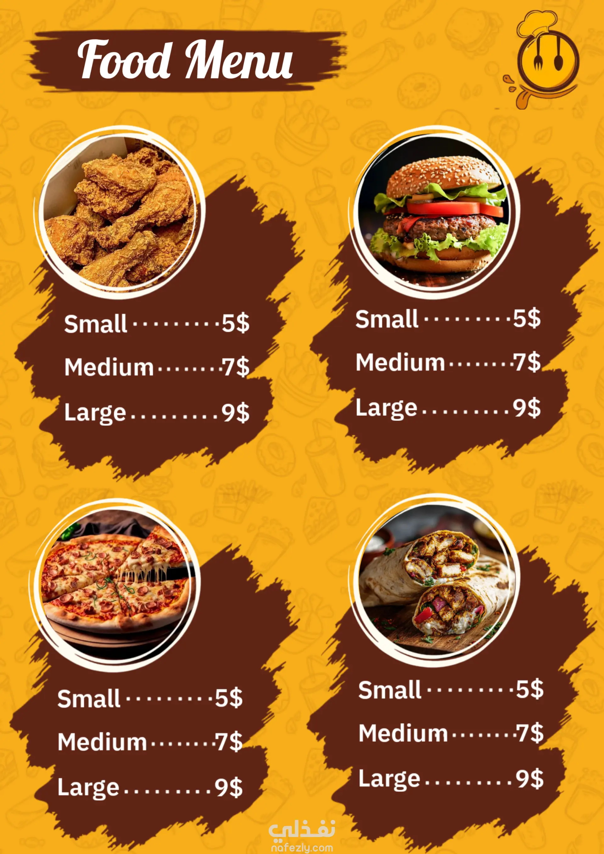 تصميم ابداعي منيو لمطعم وجبات سريعة