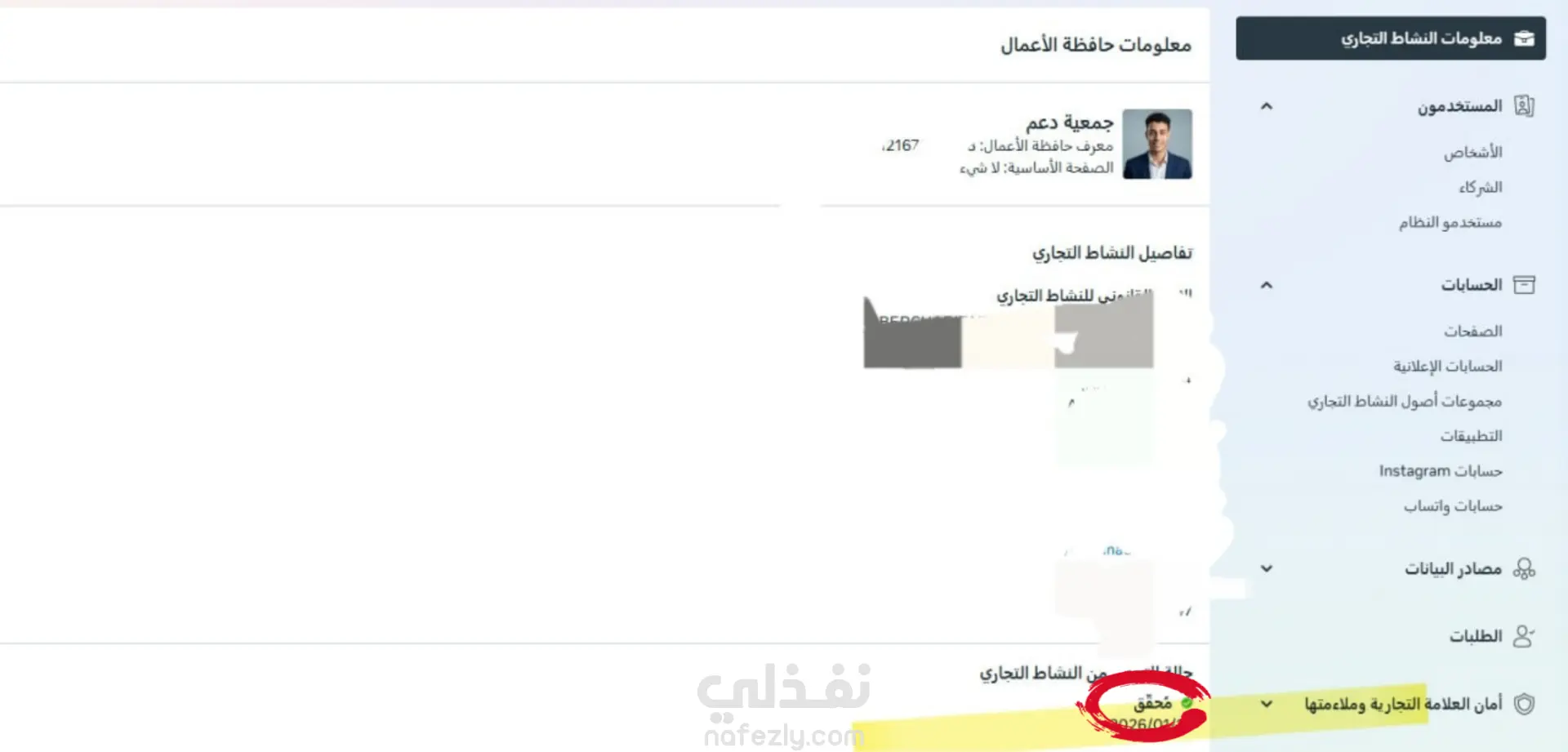 توثيق هوية النشاط التجاري و توثيق مدير أعمال ميتا