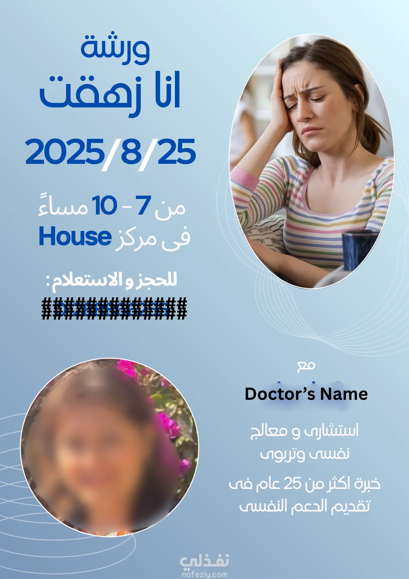 الحل: صممت بوسترات تعتمد على "التجريد البصري" (Visual Abstraction). اعتمدت خطوط عصرية (Modern Sans Serif) عشان تعطي انطباع إن الندوة "حوارية" مش "محاضرة طبية" مملة. اضفت صور الطبيب (تنفيذاً لرغبته) مما ساهم فى زيادة المصداقية تجاهه.
