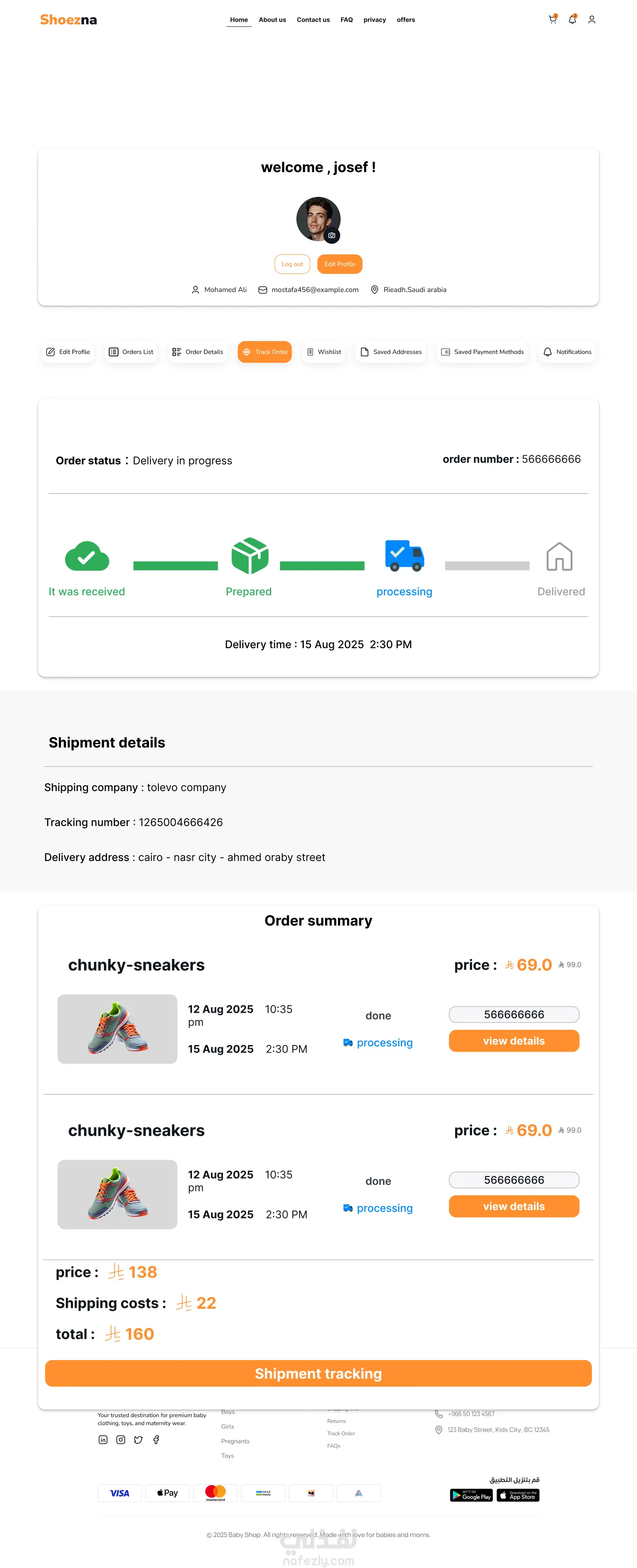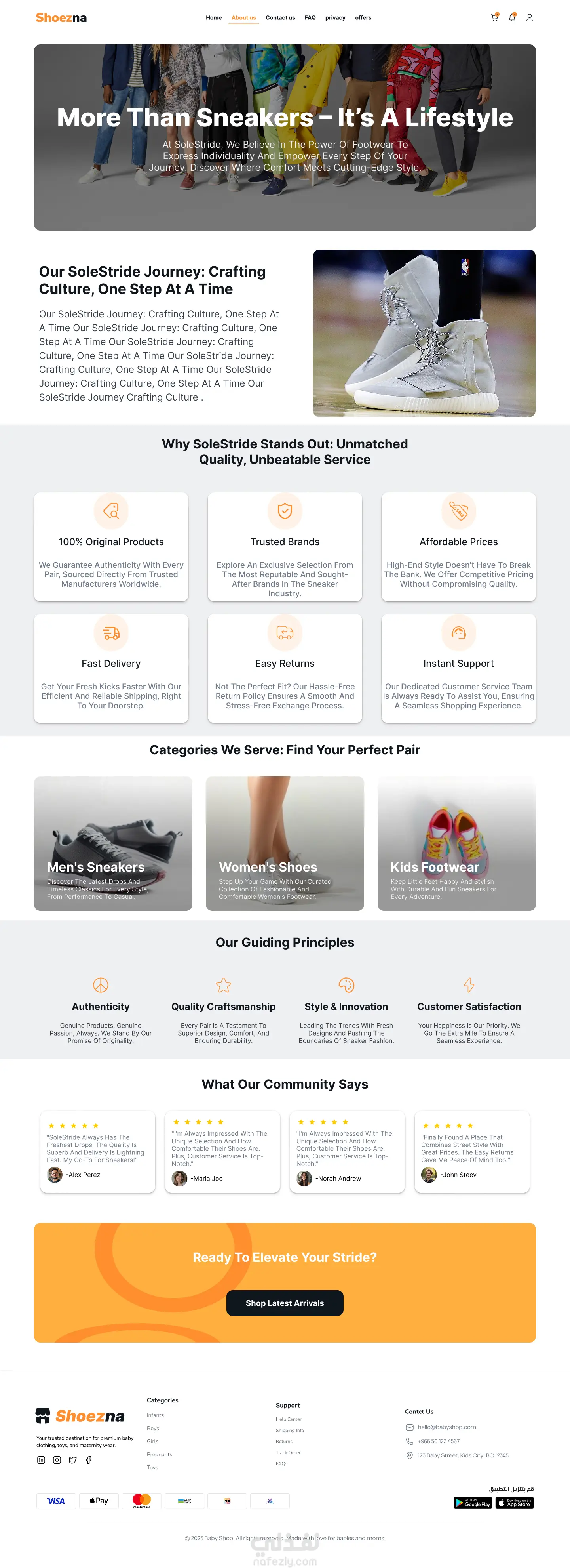 🛍️ ShoeZna Sneakers – E-Commerce Shoe Store ShoeZna Sneakers is a complete e-commerce platform specialized in selling men’s, women’s, and kids’ footwear, with a strong focus on modern and trendy sneakers that combine comfort, quality, and style. The store provides a smooth and user-friendly shopping experience, allowing customers to easily browse products, view detailed information, and complete their purchases seamlessly through a modern and attractive interface.
