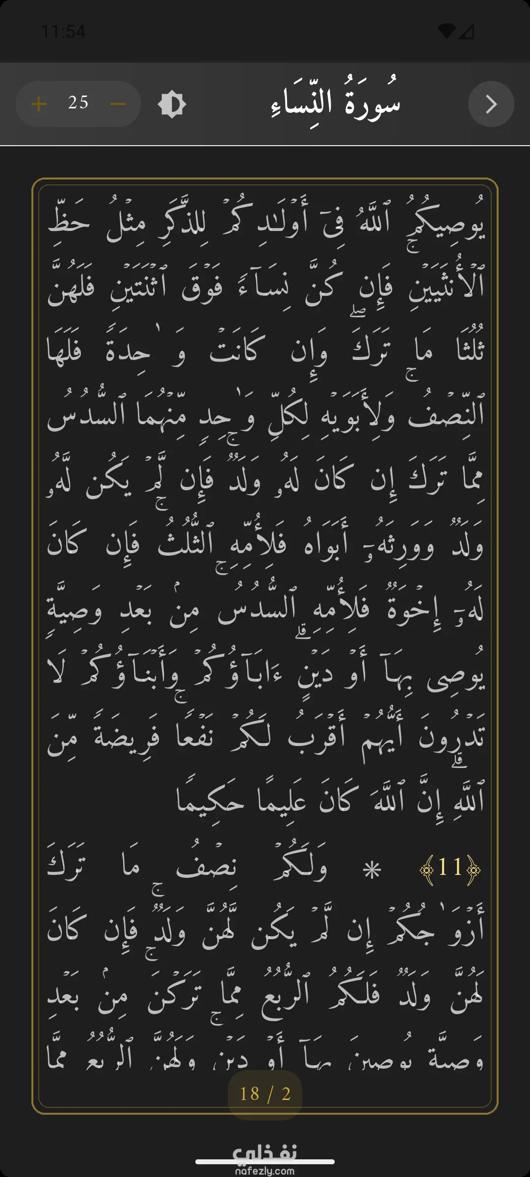 واجهة قراءة مريحة: عرض القرآن الكريم والأذكار بخطوط واضحة وتنسيق يحاكي المصحف الورقي، مع دعم الوضع الليلي (Dark Mode) للقراءة المريحة.