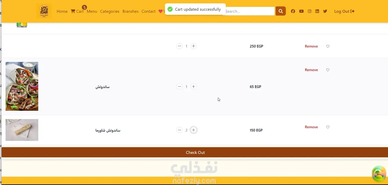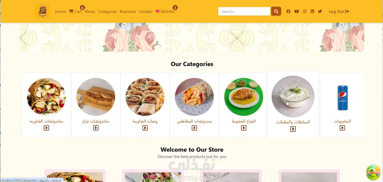 موقع مطعم شاورما باستخدام ريأكت يوفر شراء وعرض منتجات واضافة للكارت وقائمة المفضلات وتعديل الكمية وغيرها من التفاصيل مع جعله single page application with routing واستخدام apis وربطها خدمة مطعم شاورما متكاملة مع اضافة categories واطباق رئيسية وفرعية مع اضافة authentication and authorization