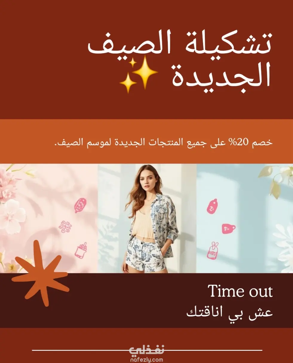 تصميم بوست إنستغرام لمتجر ملابس، يعرض الخصم الصيفي بطريقة جذابة وعصرية