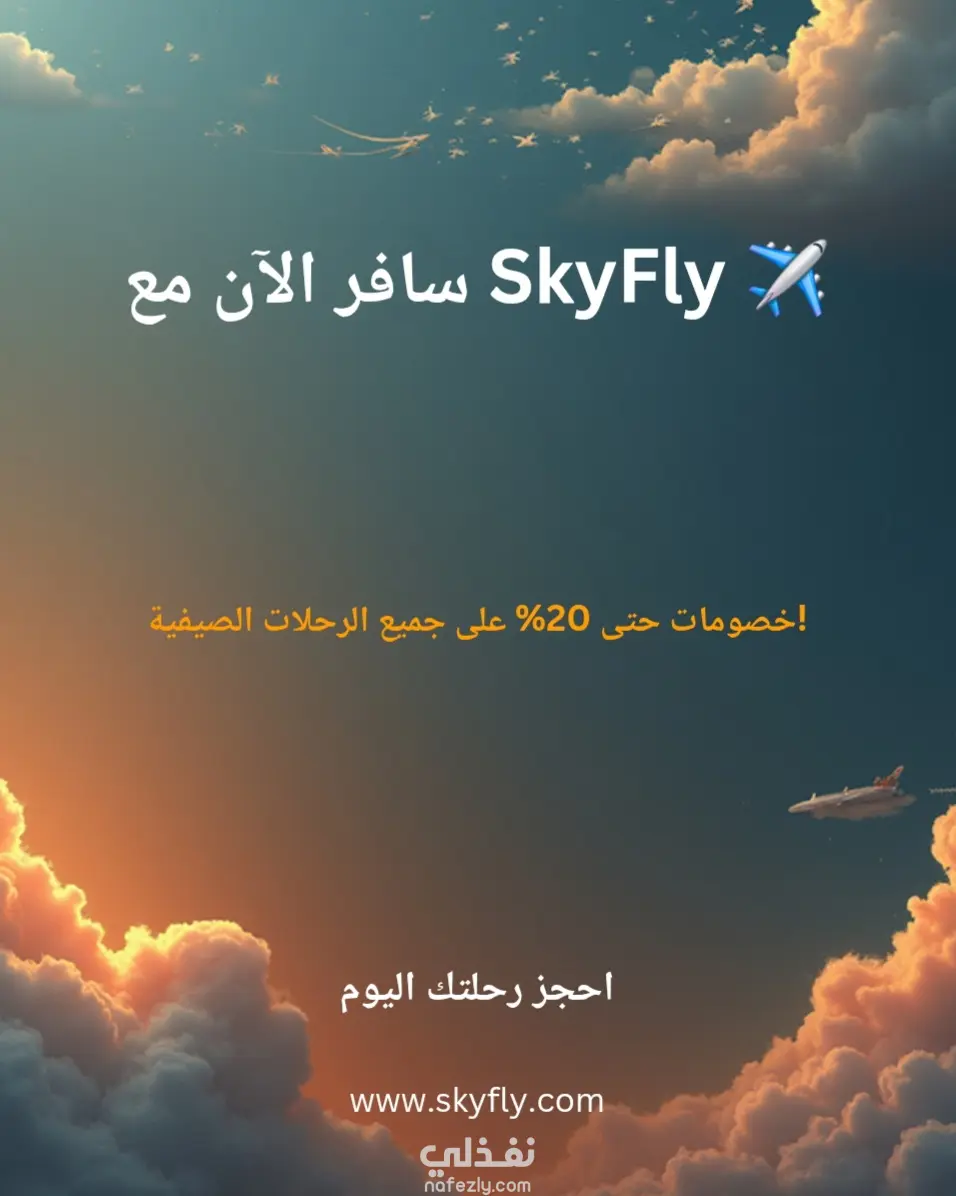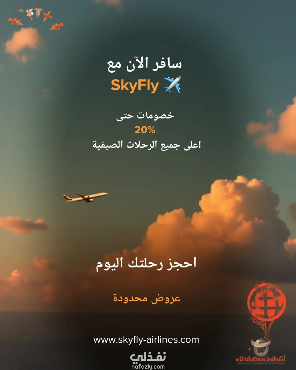 تصميم بوست إنستغرام لشركة طيران، يعرض خصومات الصيف بأسلوب جذاب واحترافي والألوان الزاهية.