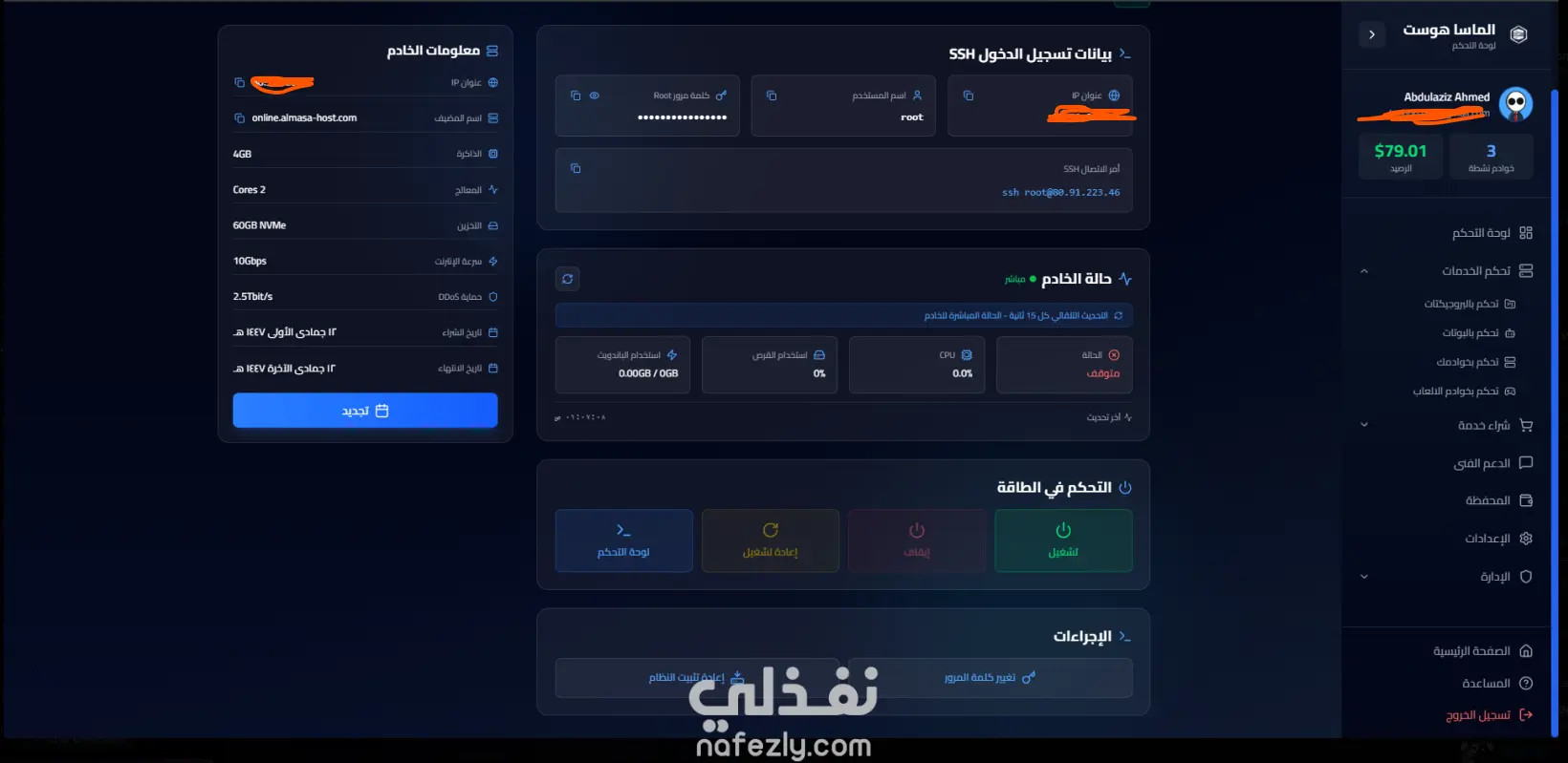 موقع إلكتروني يتيح شراء استضافات و خوادم vps, rdp ربط بوابة دفع للشراء تلقائيا لوحة العميل للتحكم بخدماته بالكامل