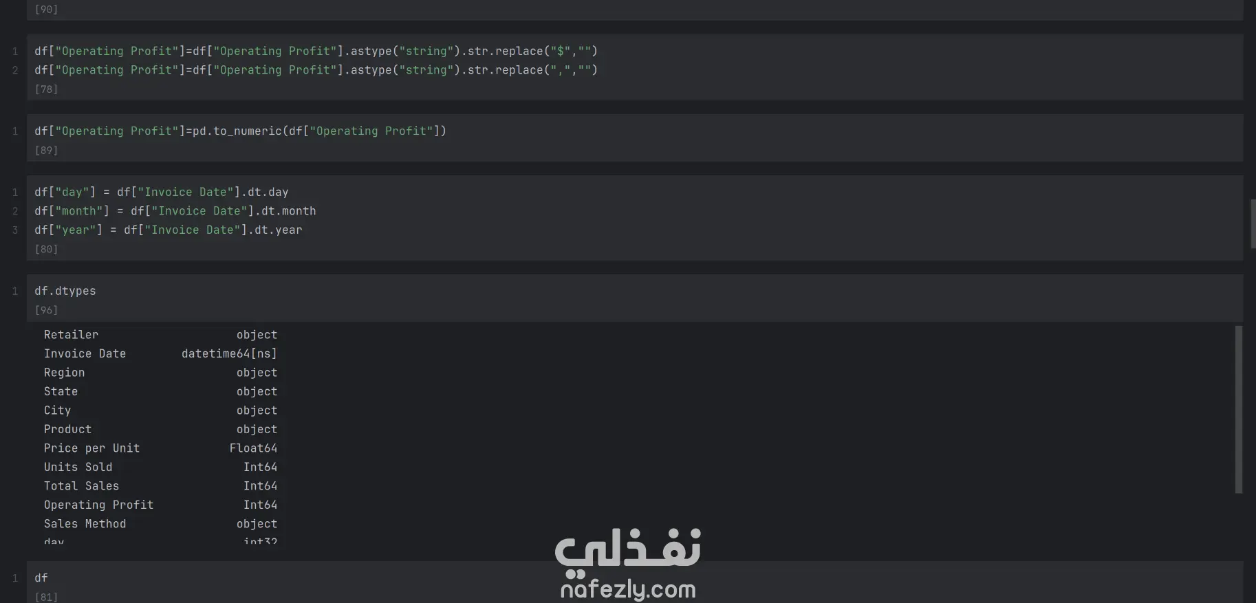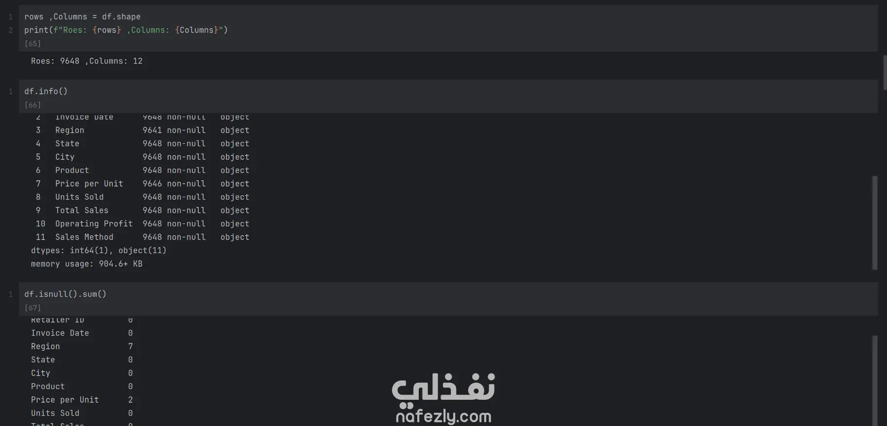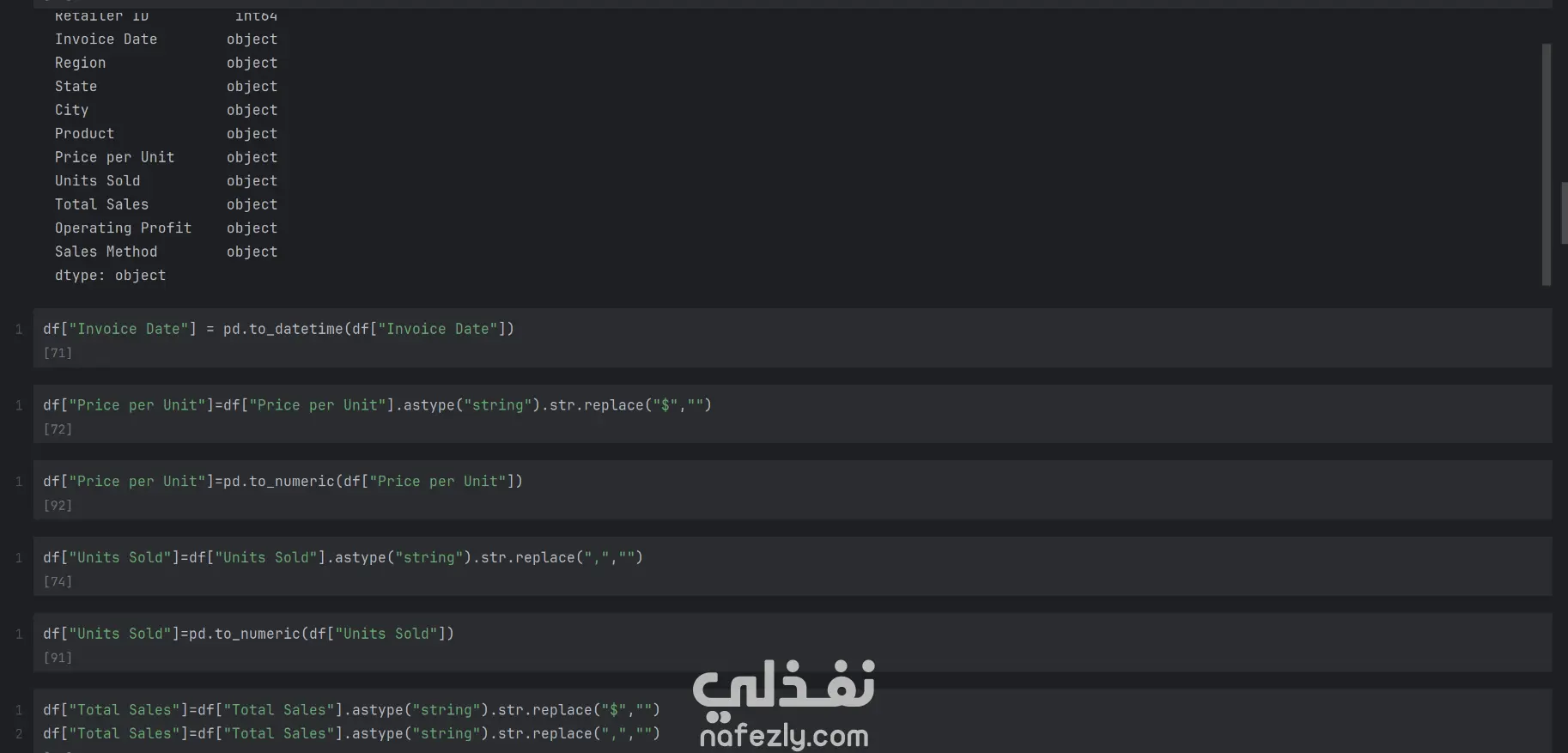 تنفيذ مشروع ETL باستخدام Python لمعالجة وتحليل بيانات المبيعات، شمل تنظيف البيانات، معالجة القيم المفقودة، تحويل أنواع البيانات، إنشاء أعمدة مشتقة من التاريخ، وتحليل المبيعات حسب المنتج والمنطقة والزمن لاستخلاص مؤشرات تساعد في اتخاذ القرار. قمت بتنفيذ مشروع ETL (Extract, Transform, Load) باستخدام Python لتحليل وتنظيف بيانات المبيعات، حيث شمل المشروع المراحل التالية: Extract قراءة البيانات من ملف CSV باستخدام Pandas. استكشاف البيانات من خلال عرض أول الصفوف وعينات عشوائية. فحص أبعاد البيانات وأنواع الأعمدة وهيكل الـ DataFrame. Transform تنظيف البيانات من القيم المفقودة والتعامل معها بطرق مناسبة. اكتشاف السجلات المكررة ومعالجتها. تحويل أنواع البيانات (Numeric / Datetime) لضمان دقة التحليل. استخراج أعمدة جديدة (اليوم، الشهر، السنة) من عمود التاريخ. إزالة الأعمدة غير الضرورية مثل Retailer ID. توحيد أسماء المناطق (Region) ومعالجة الأخطاء الإملائية وعدم الاتساق. Load & Analysis حساب إجمالي المبيعات. تحليل متوسط المبيعات حسب المنطقة والمنتج. تحديد أكثر وأقل المنتجات أداءً. تحليل عدد المنتجات المباعة سنويًا. دراسة تطور المبيعات عبر السنوات. تحليل التغير الشهري في المبيعات (Month-over-Month Analysis). تم تنفيذ المشروع بالكامل باستخدام Python و Pandas مع التركيز على جودة البيانات، التحليل الدقيق، واستخلاص مؤشرات تساعد في اتخاذ القرار.