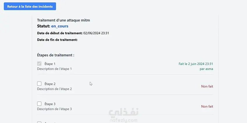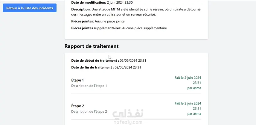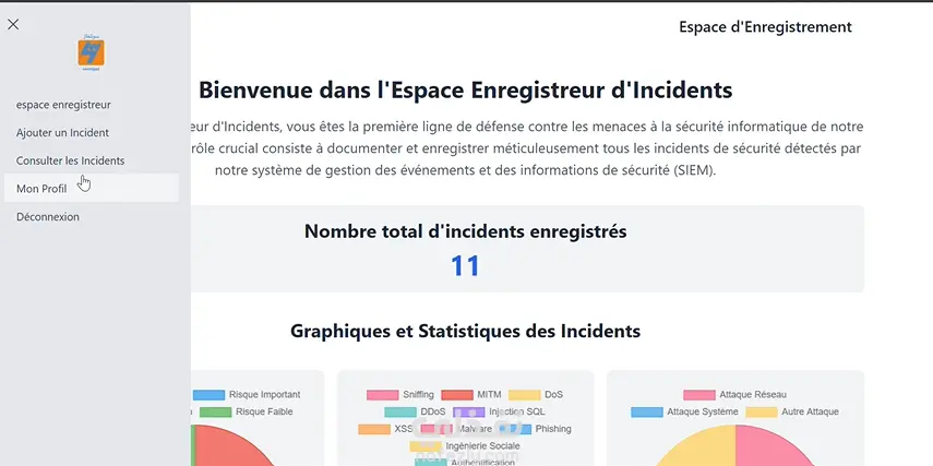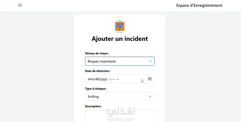 مشروع في تربص السنة الثالثة جامعي تخصص اعلام الي يهدف إلى تطوير نظام متكامل لإدارة حوادث الأمن المعلوماتي لصالح شركة صُمم التطبيق ليكون منصة مركزية تهدف إلى تحويل عملية إدارة الحوادث من النظام التقليدي إلى نظام رقمي مؤتمت يضمن الاستجابة السريعة والدقة في التنفيذ.