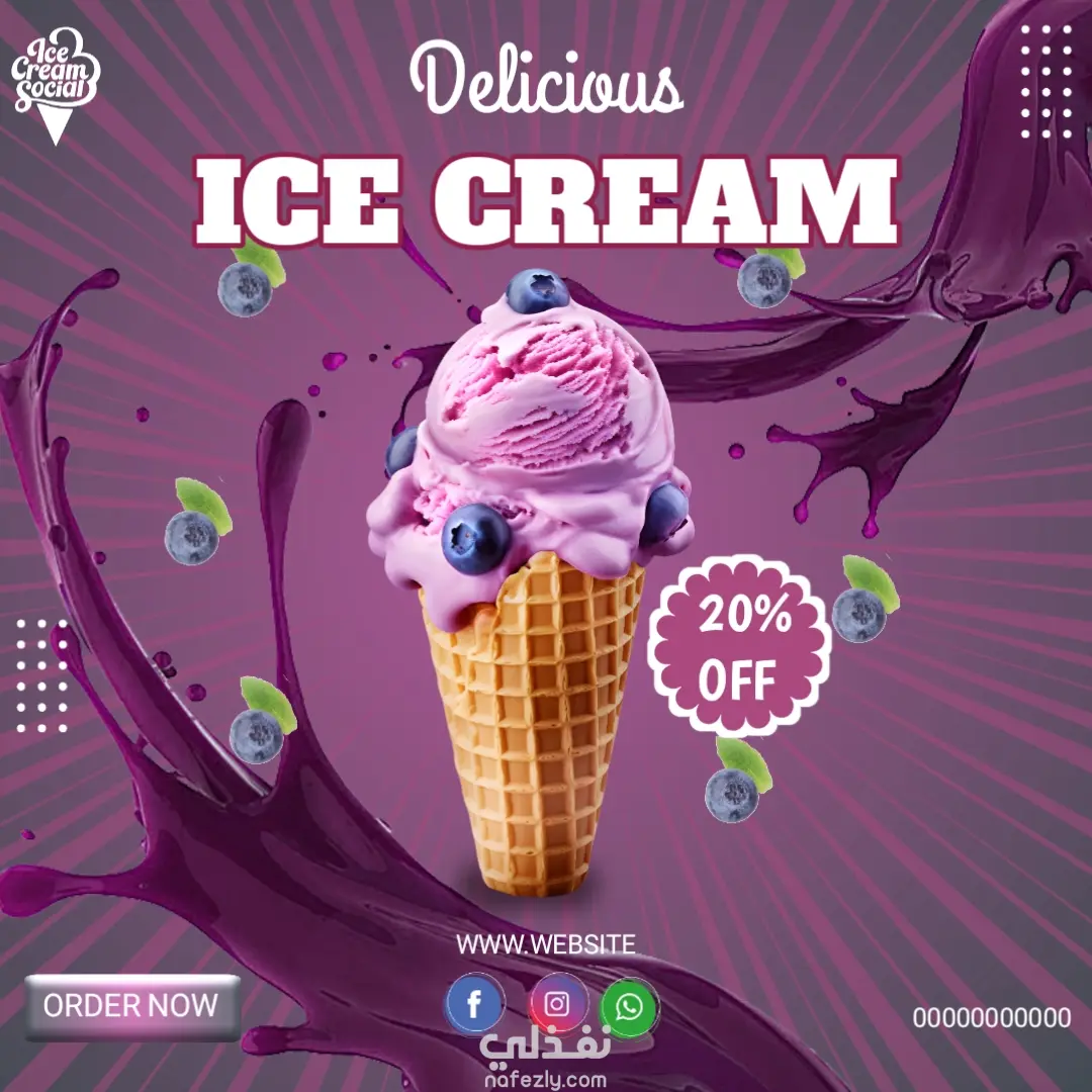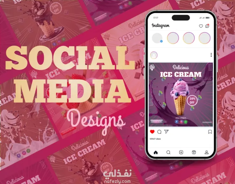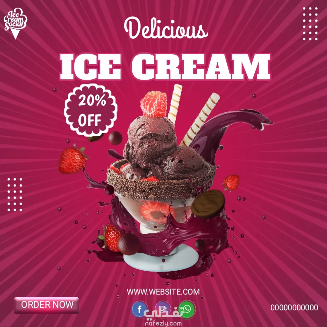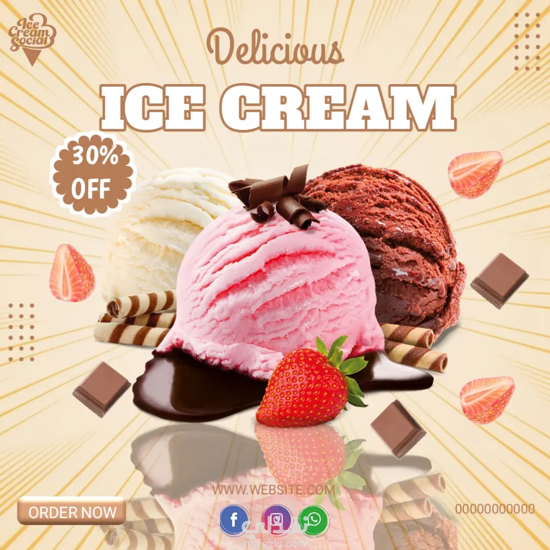 مشروع تصميمات سوشيال ميديا عن الايس كريم بأطعم مختلفة