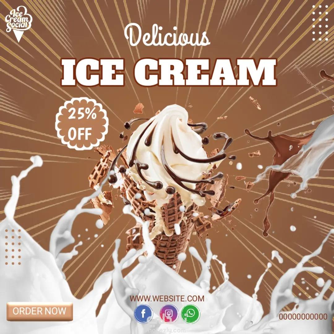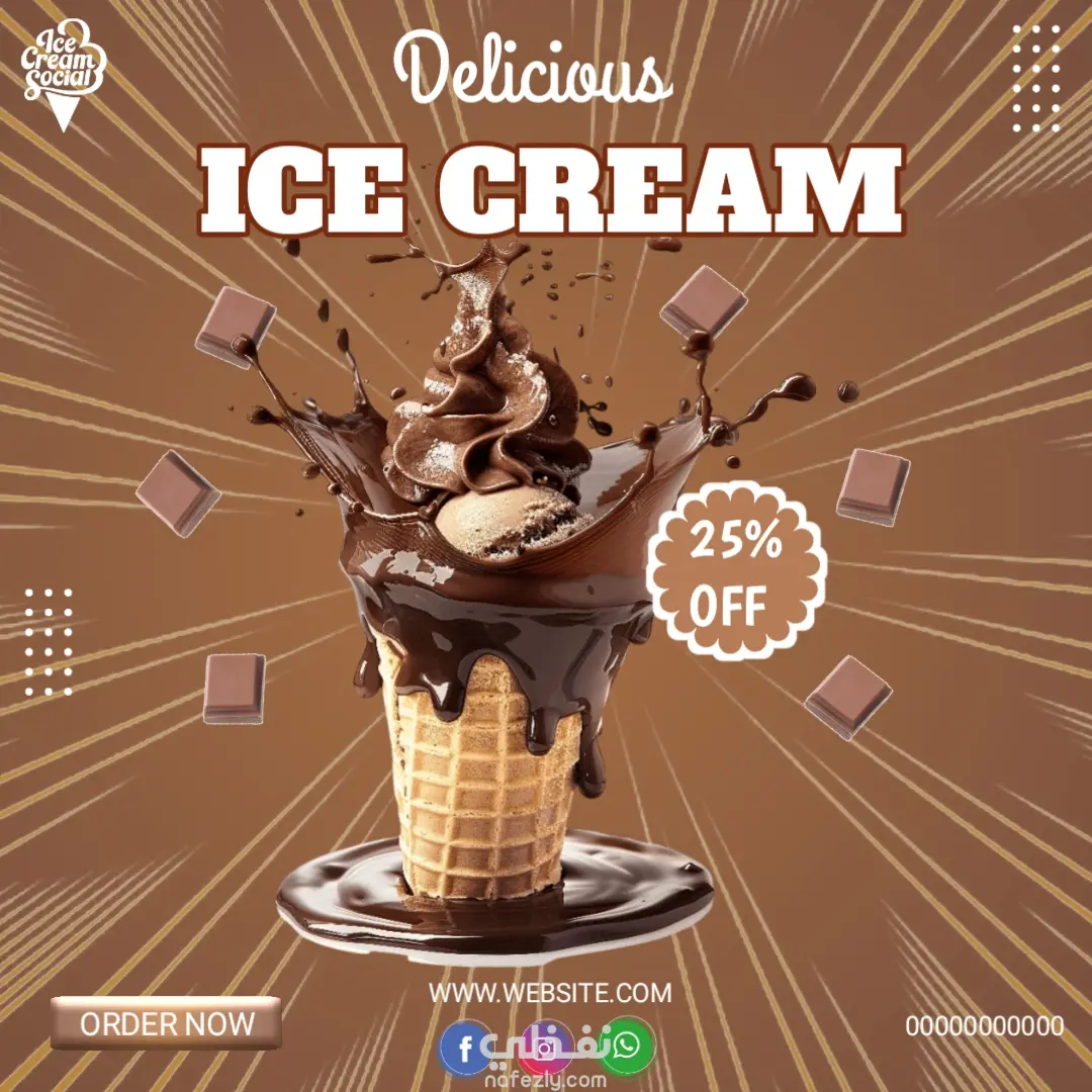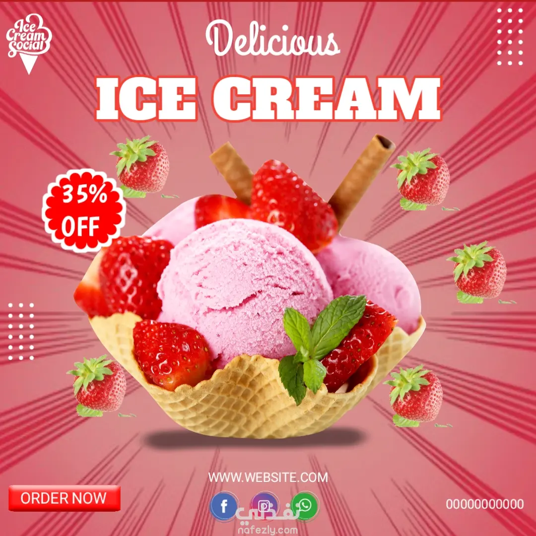 مشروع تصميمات سوشيال ميديا عن الايس كريم بأطعم مختلفة
