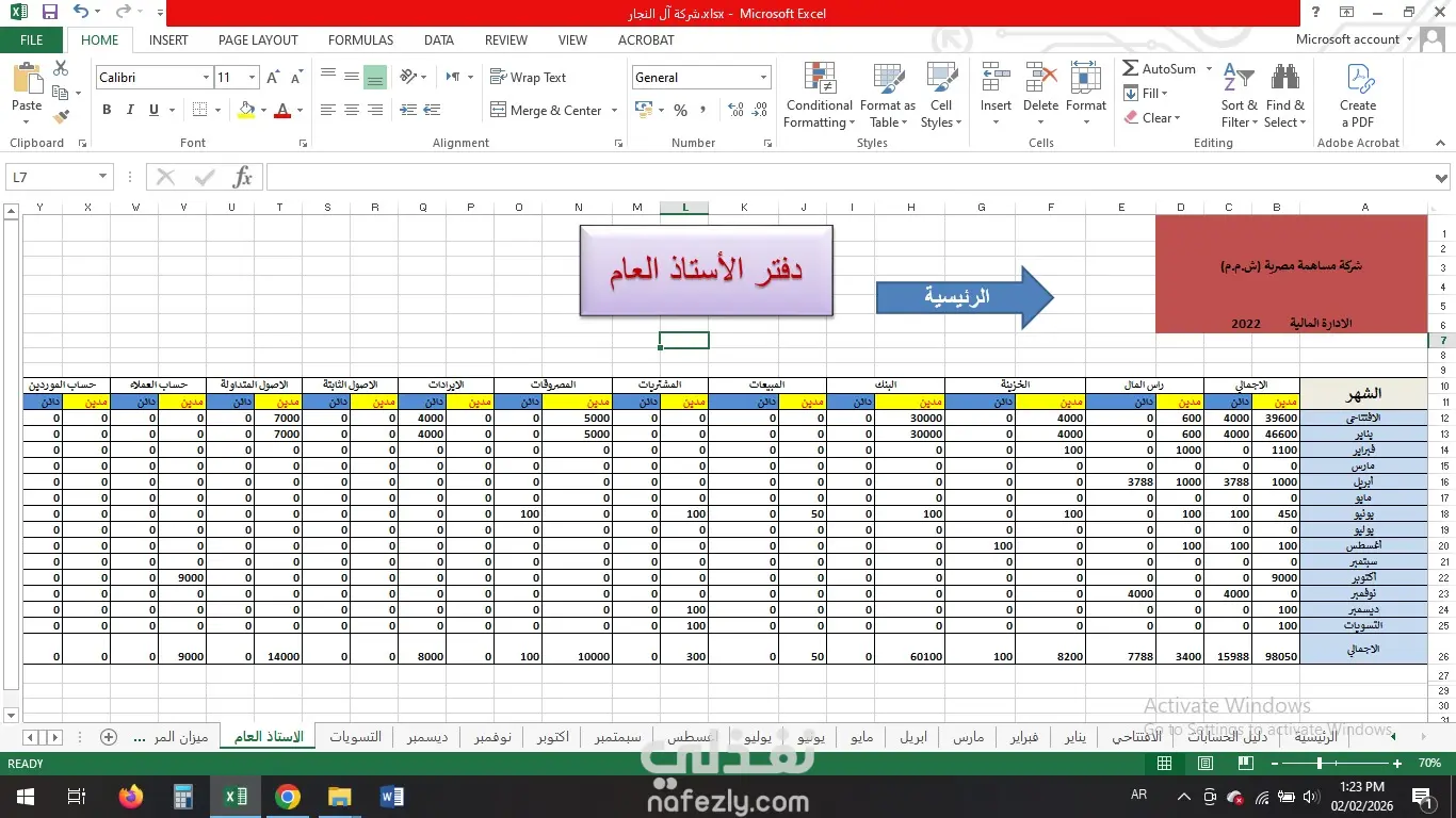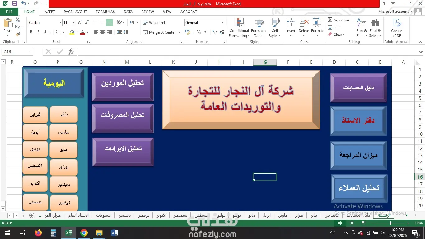 "تصميم وتطوير نظام محاسبي متكامل (Excel)