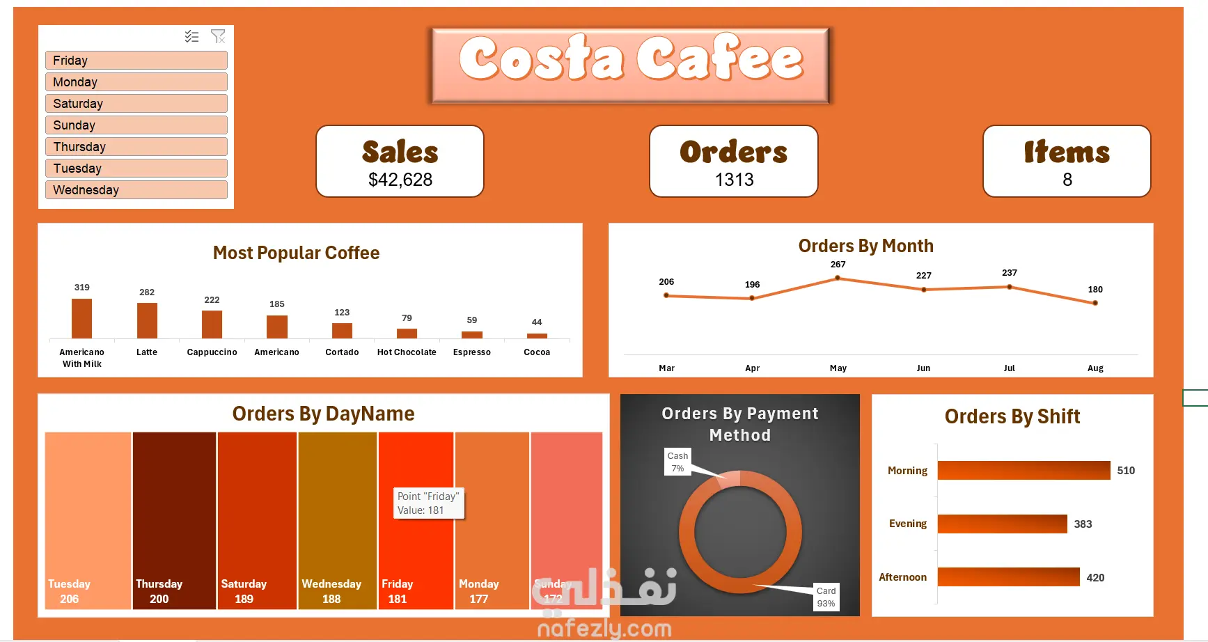 Costa Shop Dashboard by Excel