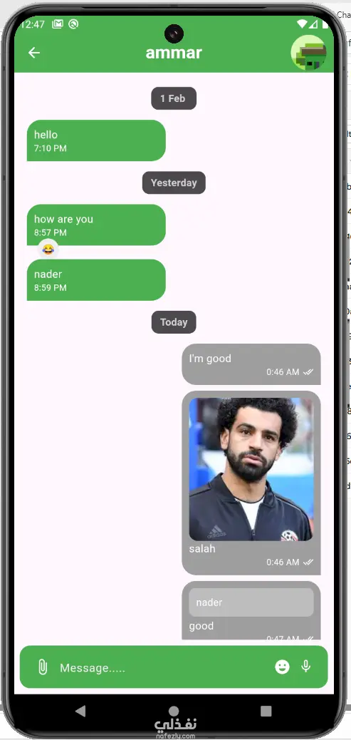 تطبيق مراسلة IOS & Android تمت برمجته بإستخدام Flutter Supabase (Baas) Responsive UI Realtime Chat Share media (Videos - single image - multiple images - audio records ) Replying to message and reactions (❤*😂-😍-👿,....)