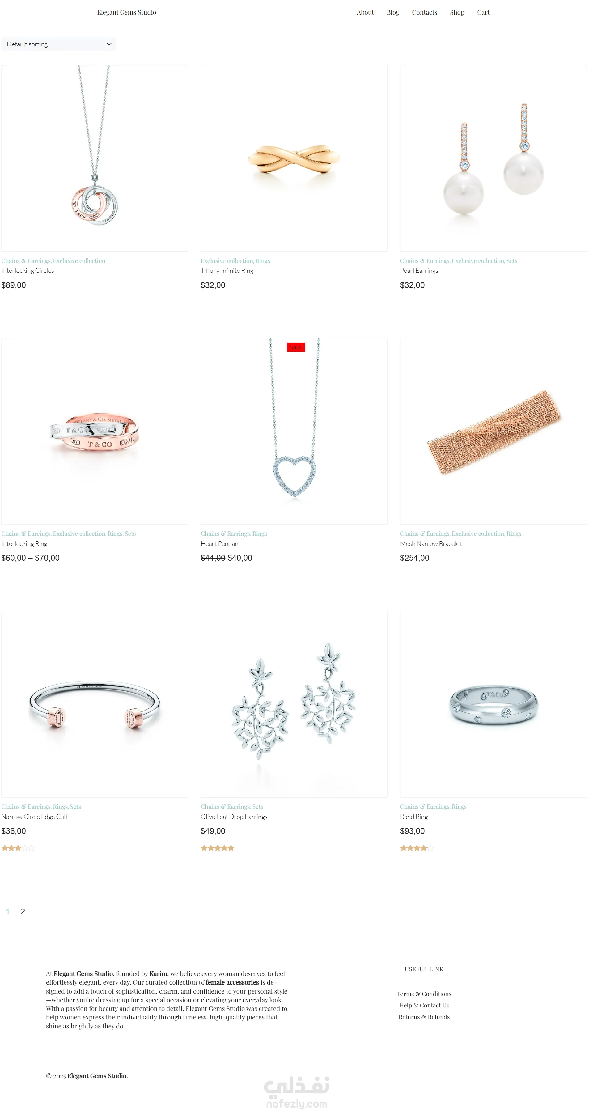 تم تصميم موقع Elegant Gems Studio باستخدام WordPress وElementor ليعكس الفخامة والرقي في عالم المجوهرات. تم التركيز على عرض المنتجات بشكل جذاب واحترافي من خلال صور عالية الجودة وتصميم أنيق متجاوب مع جميع الأجهزة، مع تطبيق استراتيجيات تحسين محركات البحث (SEO) لزيادة الظهور على Google، وإعداد خطة تسويقية عبر Google Ads للوصول إلى الفئة المستهدفة من عشاق المجوهرات. تم تنفيذ هذا الموقع كجزء من تدريبي العملي على دورة التسويق الرقمي.