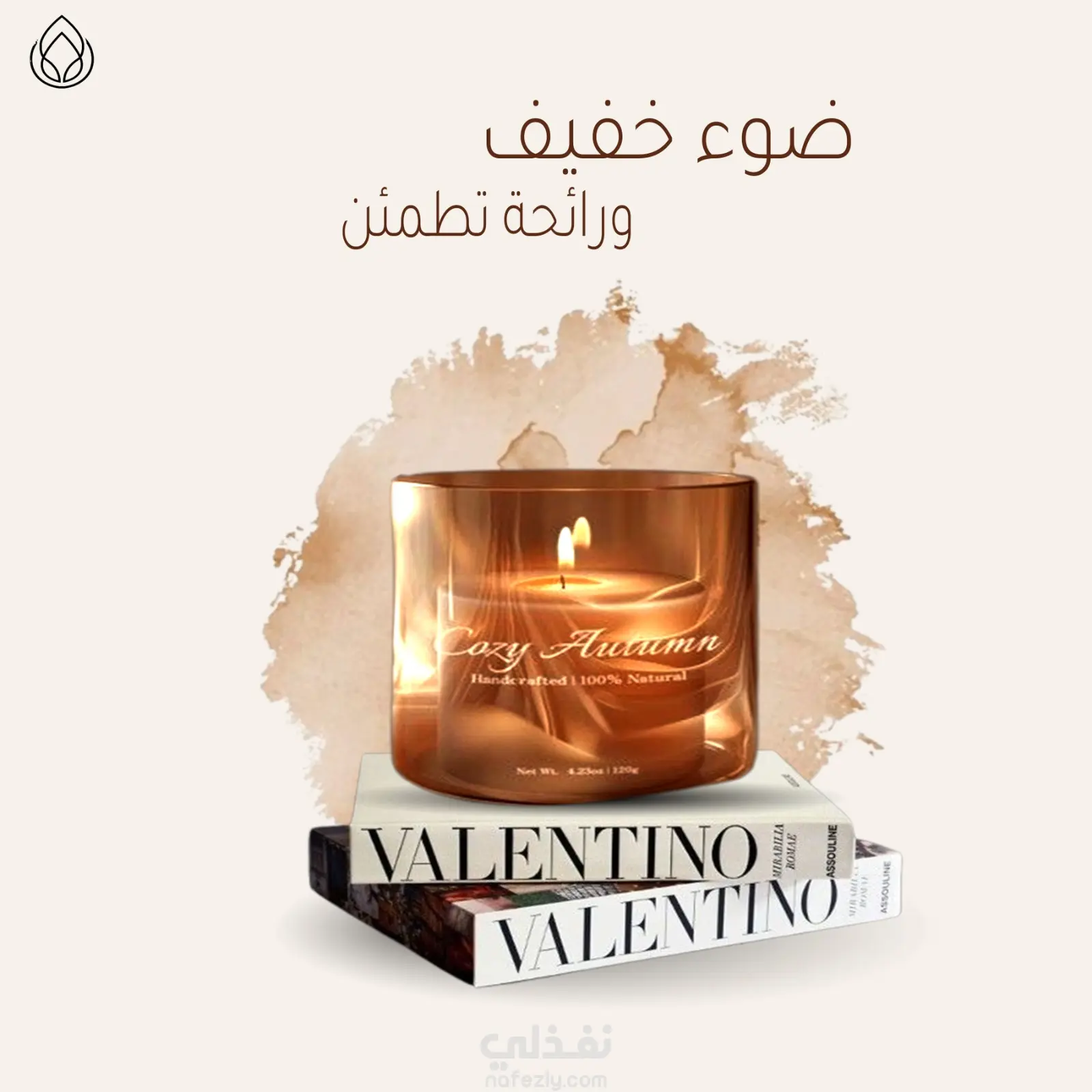 ضوء خفيف، رائحة دافئة، ولحظة هدوء تحتاجها. تصميم سوشيال ميديا براند شموع بأسلوب بسيط يركز على الإحساس والراحة
