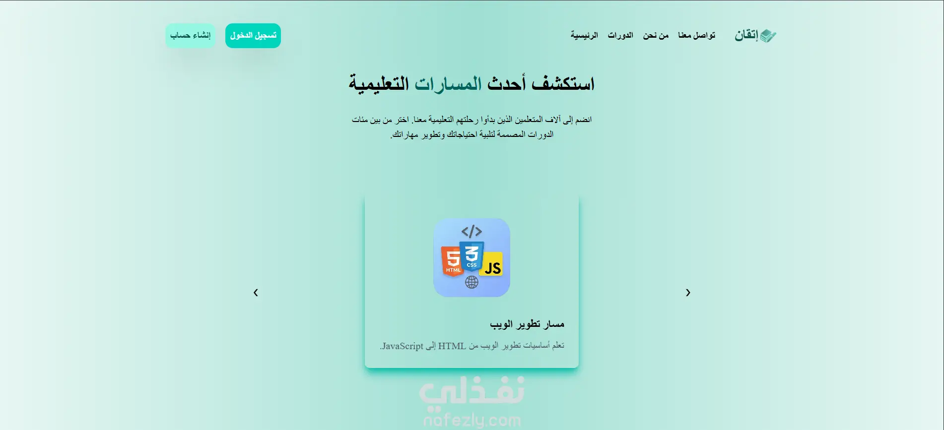 تعتمد صفحة إتقان على تصميم عصري بأسلوب SaaS، مع ألوان هادئة وتناسق بصري يدعم اللغة العربية بالكامل، مما يساعد الزائر على فهم قيمة المنصة بسرعة واتخاذ قرار البدء في التعلم.