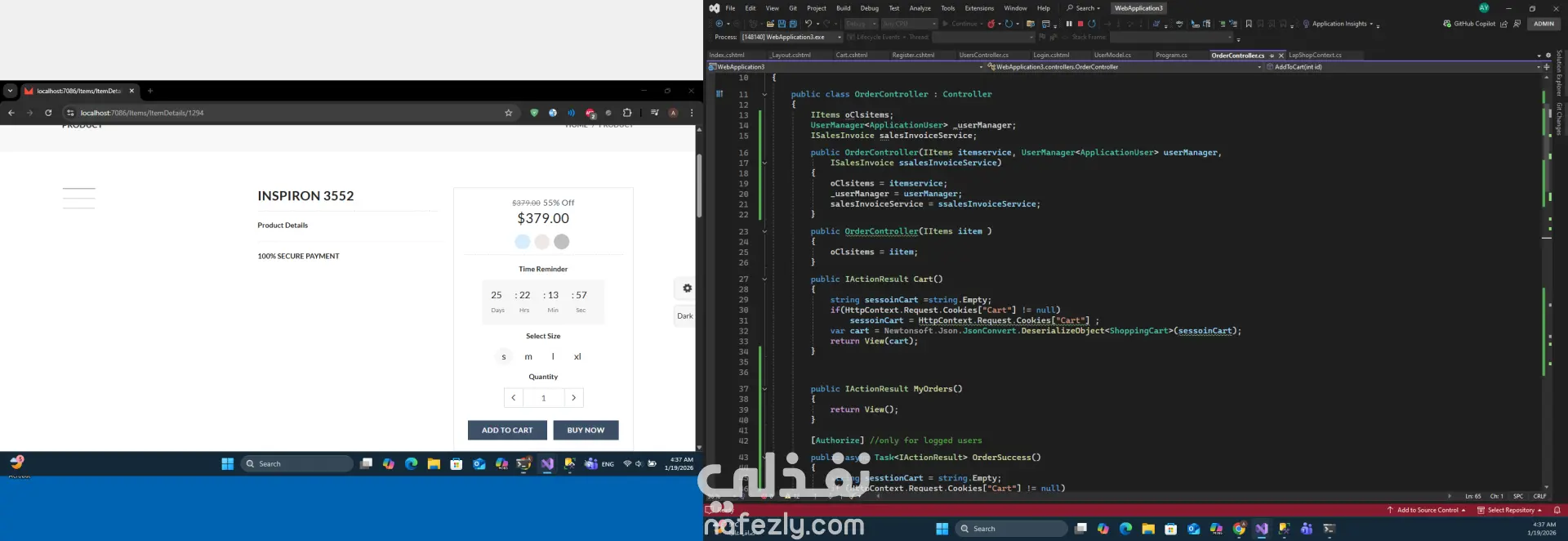 قمت بعمل متجر لبيع اللابتوبات واستخدمت تقنية الasp.net core والفرونت ان استخدمت الhtml ,css ولكن جمعت الفرونت ان والباك اند ف تقنية MVC الموقع يحتوي علي عرض جميع اللابتوبات ويمكن اضافة اي عنصر الي السلة والسلة تحسب ال total لحين عمل checkout وايضا هناك admin panel للتحكم ف الموقع