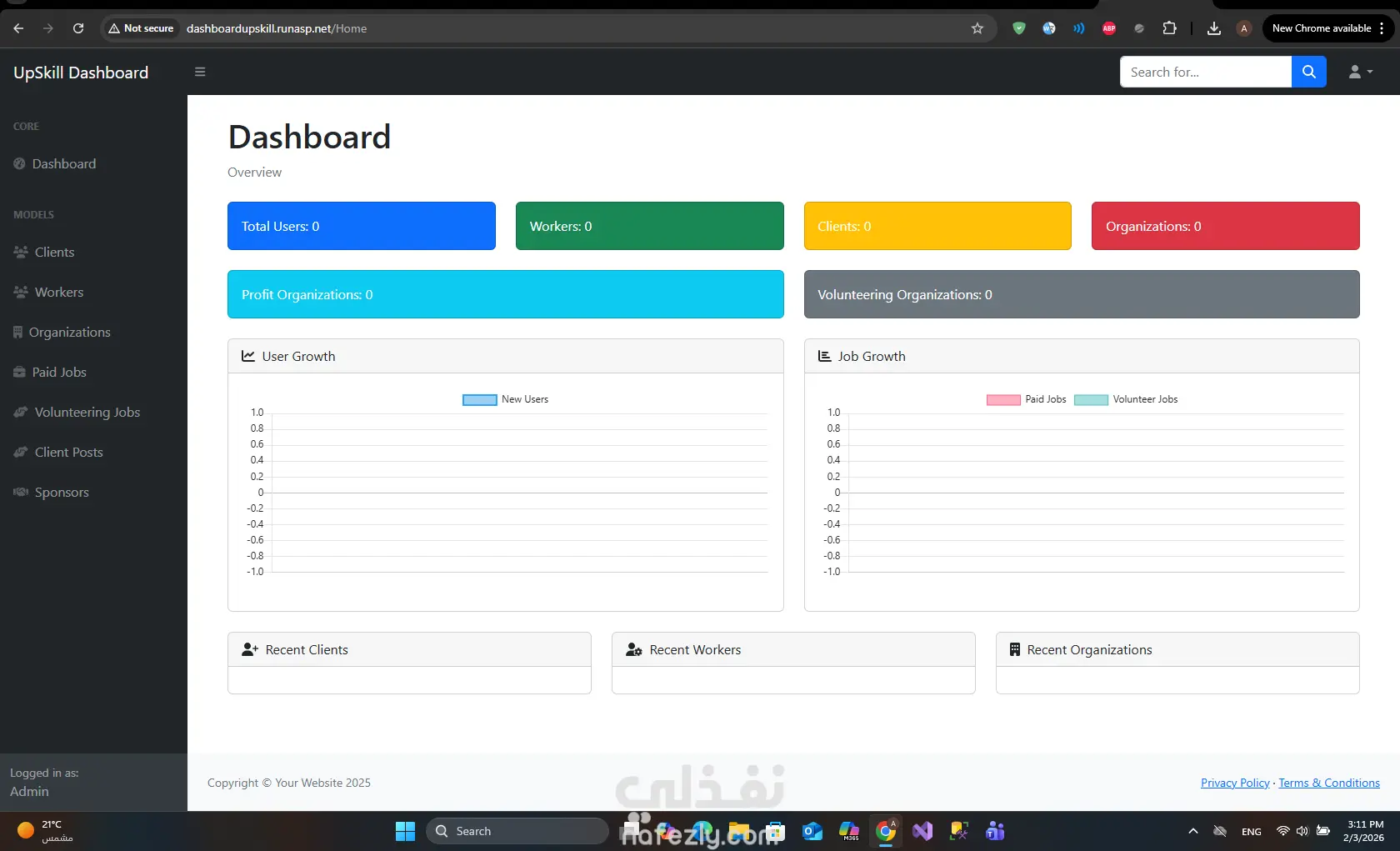 موقع dashboard لادارة التطبيق الخاص بي