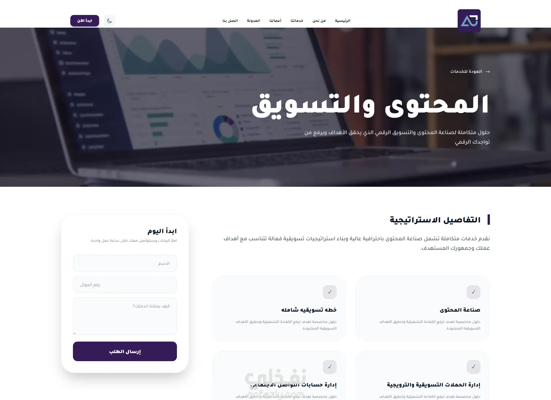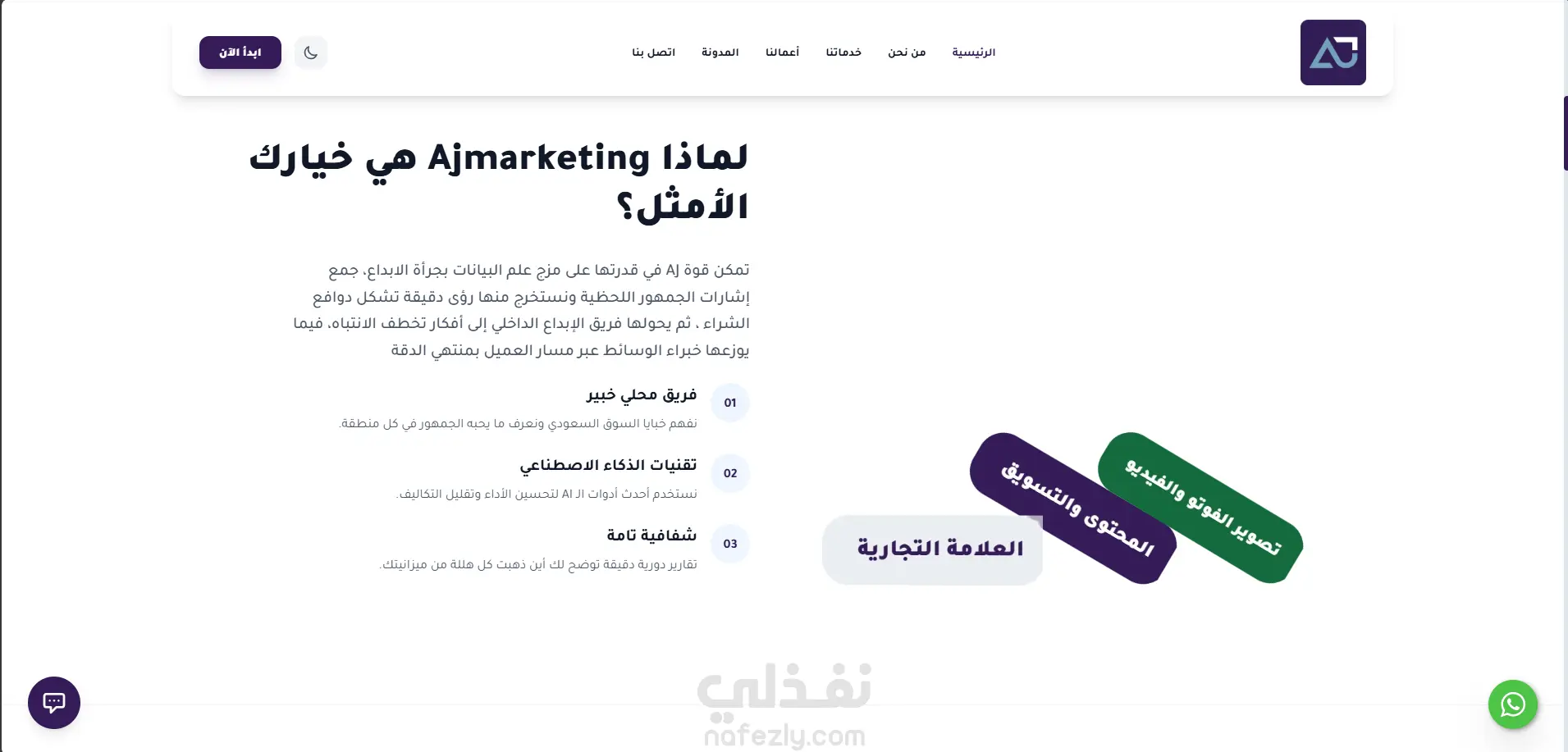 موقع لشركة تسويق مزوّد بالذكاء الاصطناعي وأتمتة واتساب