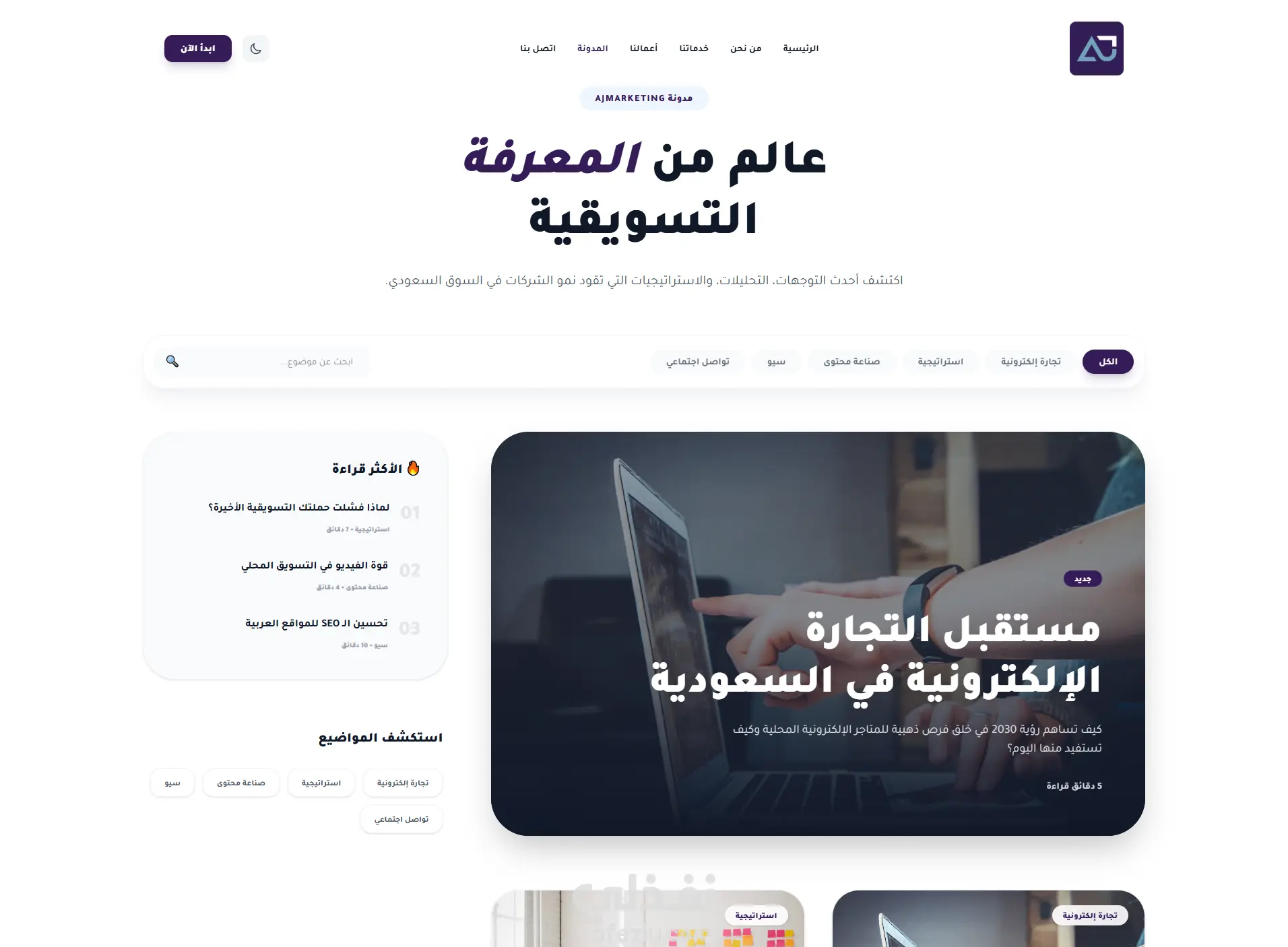 موقع احترافي لشركة تسويق رقمي (AjMarketing) يعرض خدمات الشركة، أعمالها السابقة، المدونة، ووسائل التواصل بطريقة تفاعلية وحديثة، مع دمج تقنيات الذكاء الاصطناعي وأتمتة واتساب لتحويل الزوار إلى عملاء محتملين بشكل تلقائي. يوفّر الموقع تجربة متكاملة للزائر تتيح له استكشاف الخدمات، مشاهدة البورتفوليو، قراءة المقالات، والتواصل بسهولة، بينما يعمل AI Agent مدمج داخل الموقع على استقبال بيانات العملاء المهتمين، إرسالها مباشرة إلى واتساب عبر Twilio، ثم متابعة المحادثة تلقائيًا عبر بوت واتساب ذكي يقوم بتأهيل العميل (Qualification) وتحويله لموظف بشري عند الحاجة. الموقع باللغة العربية بالكامل ومهيأ لمحركات البحث (SEO)، ويحتوي على أنيميشن حديثة وتأثيرات تفاعلية تعزز تجربة المستخدم. أهم المميزات: عرض خدمات الشركة والبورتفوليو والمدونة AI Agent لالتقاط بيانات العملاء من الموقع إرسال العملاء تلقائيًا إلى واتساب عبر Twilio بوت واتساب ذكي لتأهيل العملاء وتحويلهم لموظف بشري تهيئة كاملة لمحركات البحث (SEO) تصميم متجاوب لجميع الأجهزة أنيميشن وتأثيرات تفاعلية حديثة التقنيات المستخدمة: Next.js، TypeScript، Tailwind CSS، OpenAI، Twilio WhatsApp API، Framer Motion، Matter.js، EmailJS