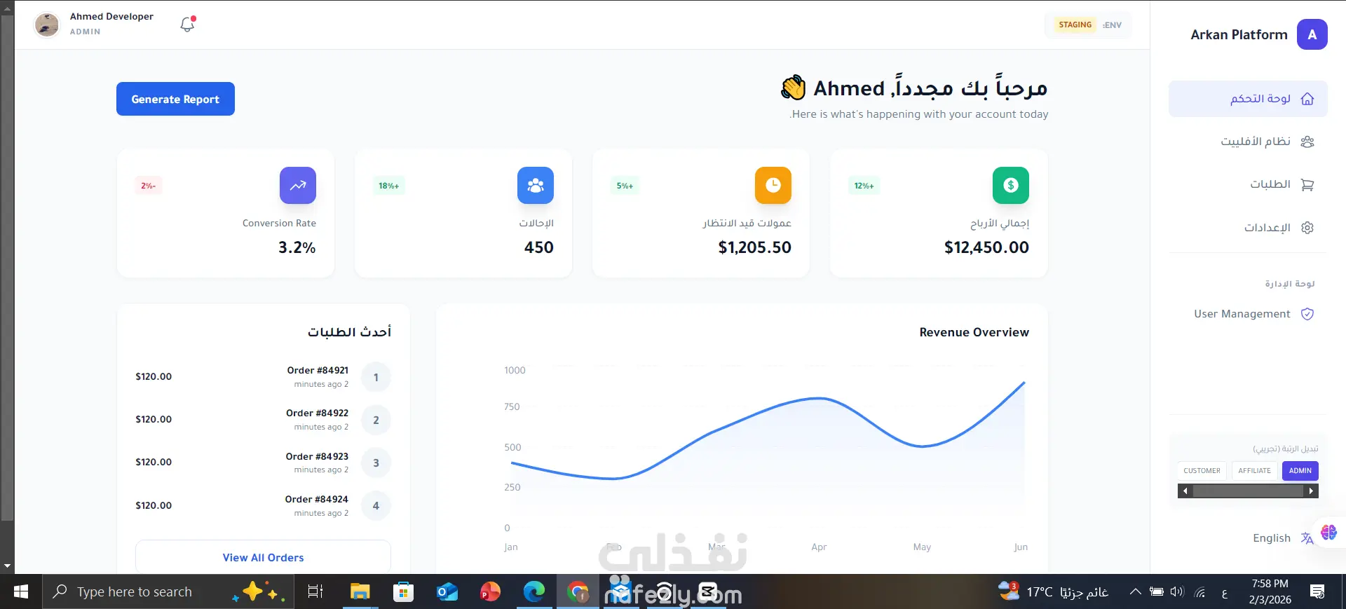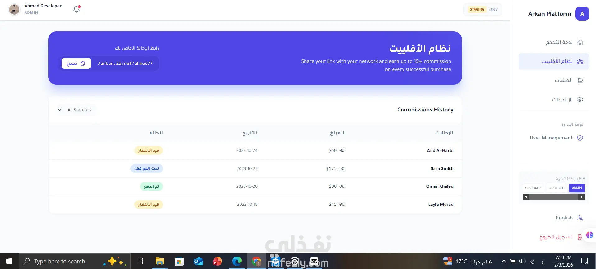 منصة ويب متكاملة لإدارة الطلبات والتسويق بالعمولة