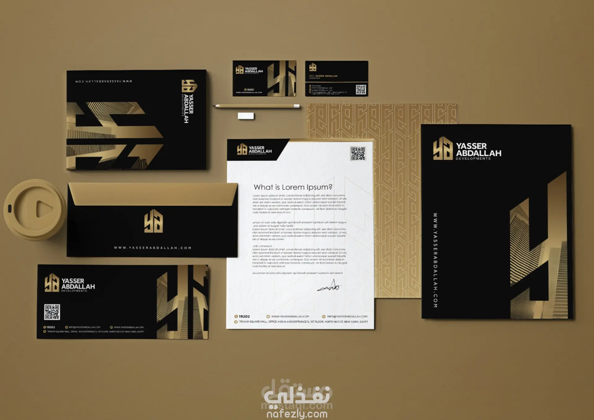 هوية بصرية كاملة لشركة ياسر عبد الله للمقاولات العامة بالاضافة الى العناصر الدعائية