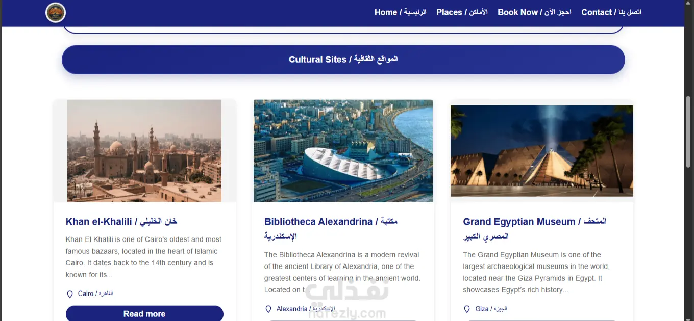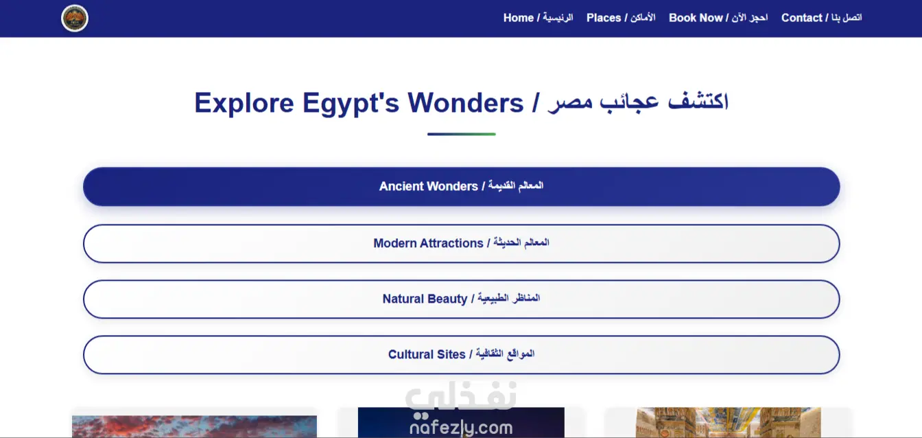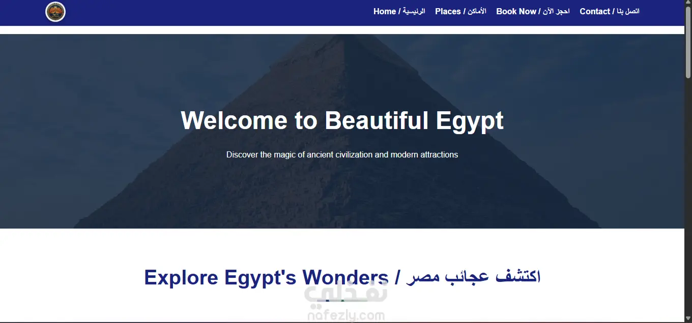 موقع إلكتروني يبرز حضارة مصر وآثارها من خلال عرض معلومات وصور لأهم المعالم التاريخية. تم تطوير الموقع باستخدام HTML وCSS وJavaScript مع تصميم متجاوب وسهل الاستخدام على جميع الأجهزة، وتركيز على تنظيم المحتوى وتجربة مستخدم سلسة.