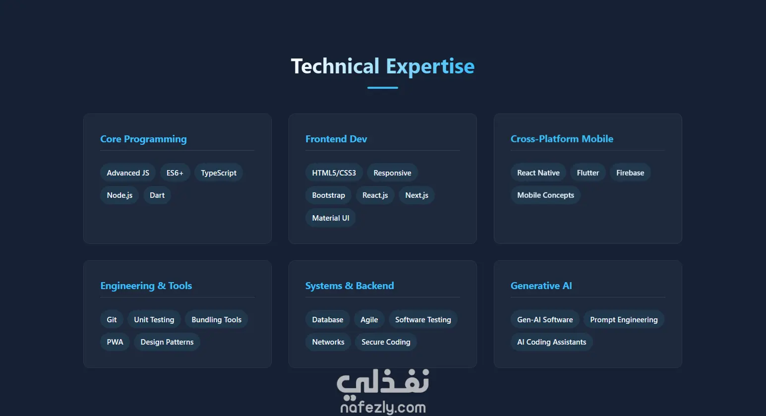 صفحة هبوط لعرض الاعمال والخبرات – عرض احترافي لمطور واجهات أمامية