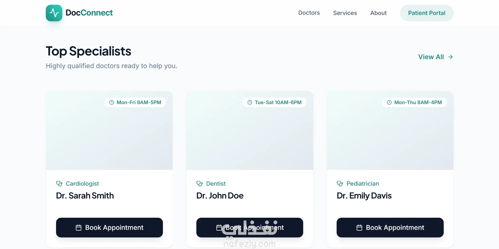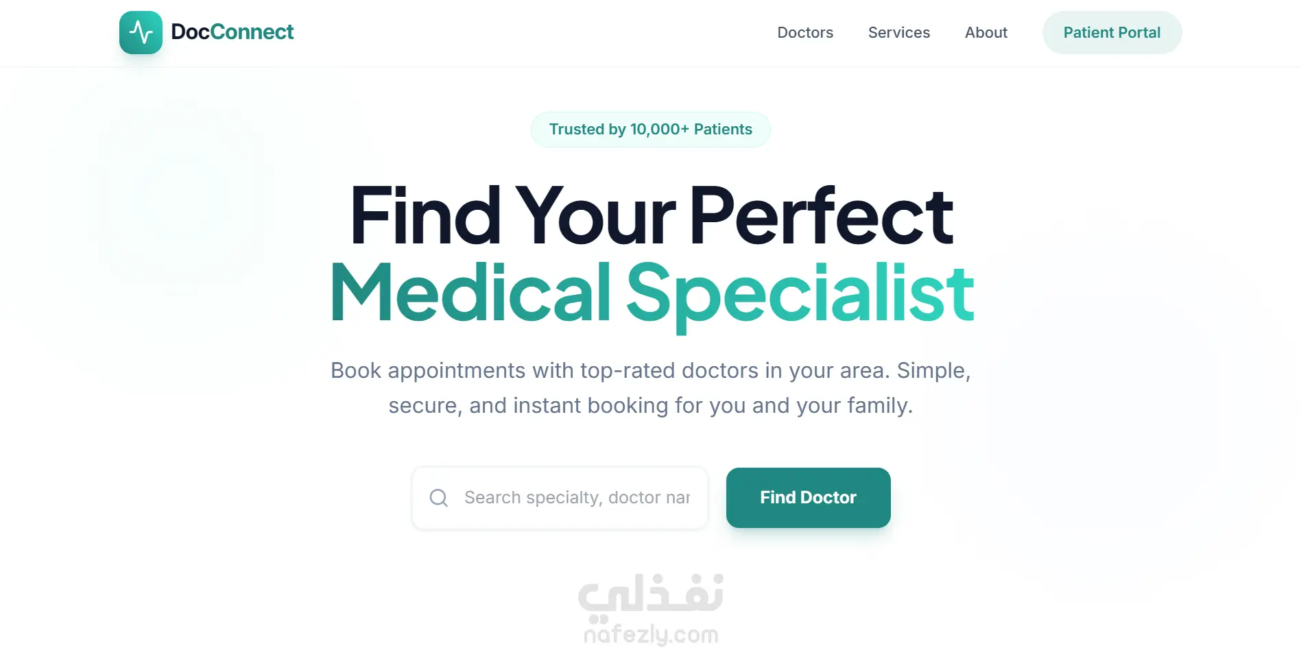 قمت بتطوير واجهة مستخدم حديثة لمنصة طبية تتيح للمرضى البحث عن الأطباء وحجز المواعيد بسهولة وسرعة.