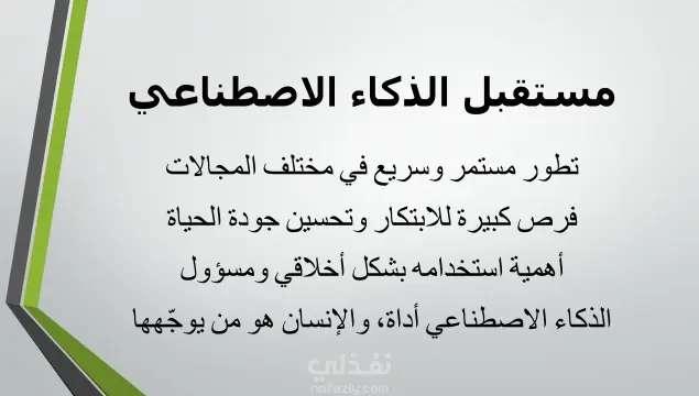عرض تقديمي (Presentation) عن الذكاء الاصطناعي وفوائده وتطبيقاته ومستقبله