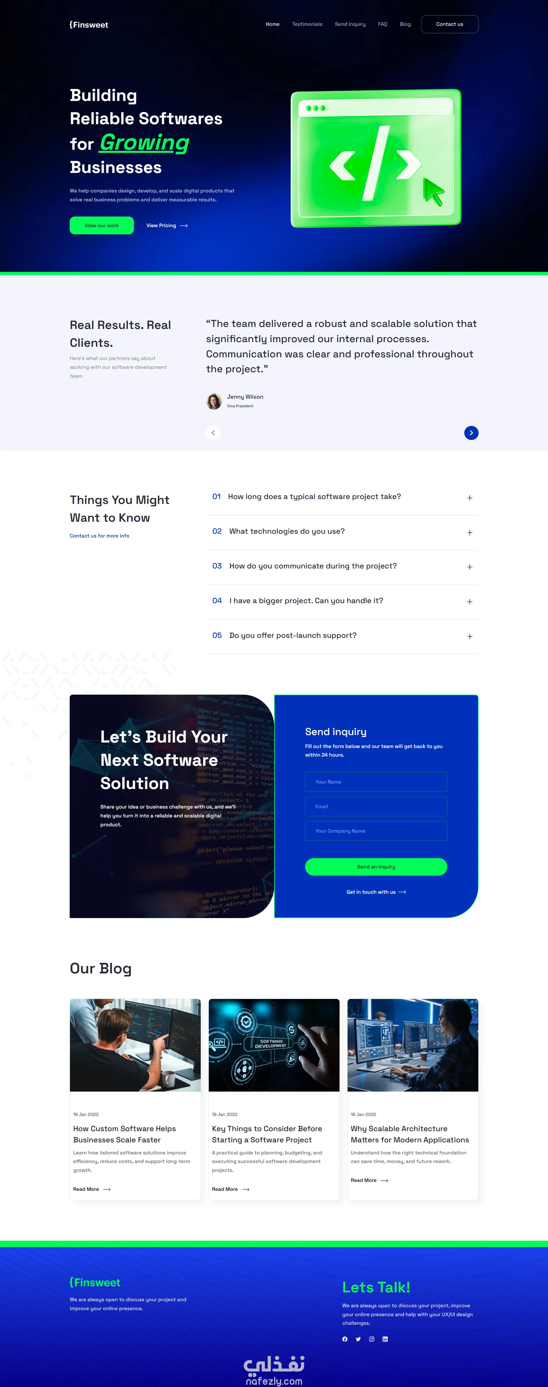 تطوير صفحة هبوط Landing Page لشركة حلول برمجية