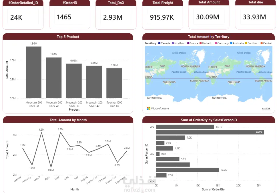 تنفيذ تحليل بيانات متكامل باستخدام Excel وPower BI يشمل تنظيف البيانات، تحليلها، واستخراج المؤشرات الرئيسية (KPIs). إنشاء Dashboards تفاعلية لعرض الأداء، تتبع الاتجاهات، ودعم اتخاذ القرار بناءً على البيانات. الأدوات المستخدمة: Excel (Data Cleaning، Pivot Tables، Charts) Power BI (Data Modeling، DAX، Data Visualization)