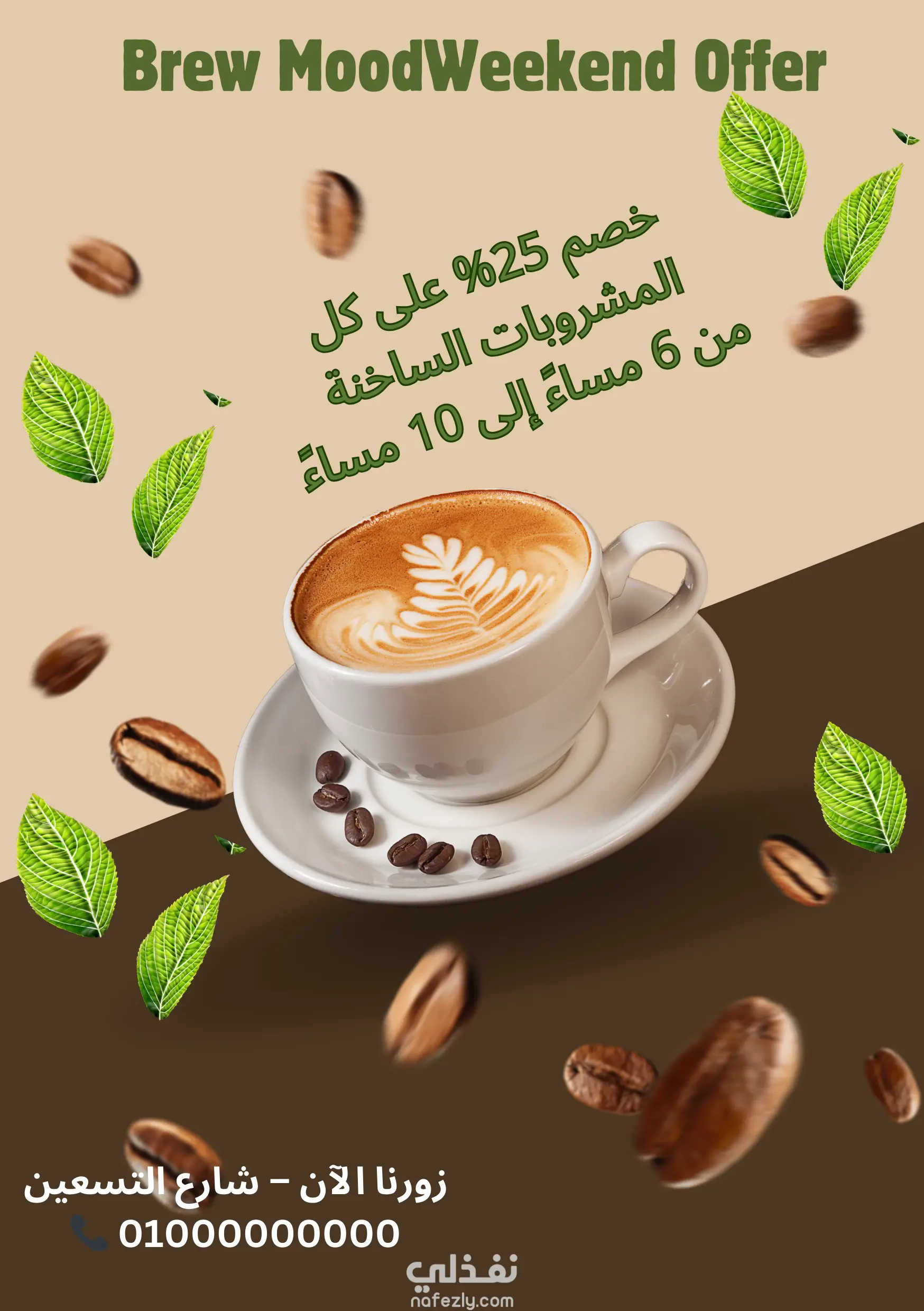 مشروع تصميم هوية إعلانية متكاملة لـ "Brew Mood" كافيه، يهدف إلى الترويج لعروض الـ Weekend بطريقة عصرية وجذابة بصرياً. تم التركيز في هذا المشروع على خلق توازن بين الألوان الدافئة التي تعكس هوية القهوة، وبين التنسيق الإبداعي للعناصر لضمان وصول الرسالة التسويقية بوضوح للمستهلك.