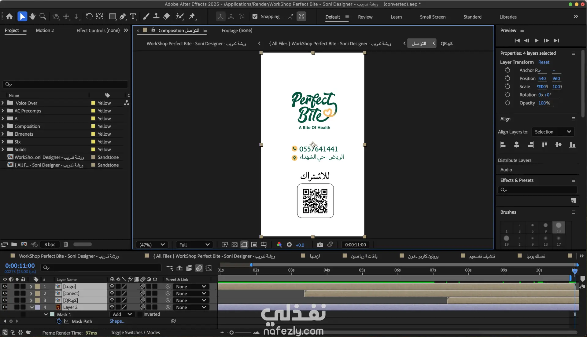 ورشة عمل فيديو موشن جرافيك احترافي لبرفكيت بايت بالمقاس الطولي WorkShop Perfect Bite