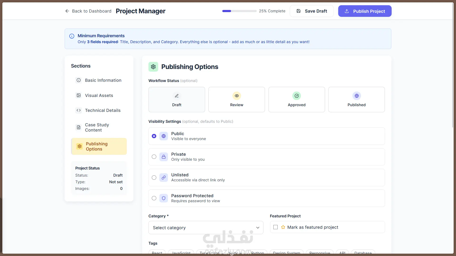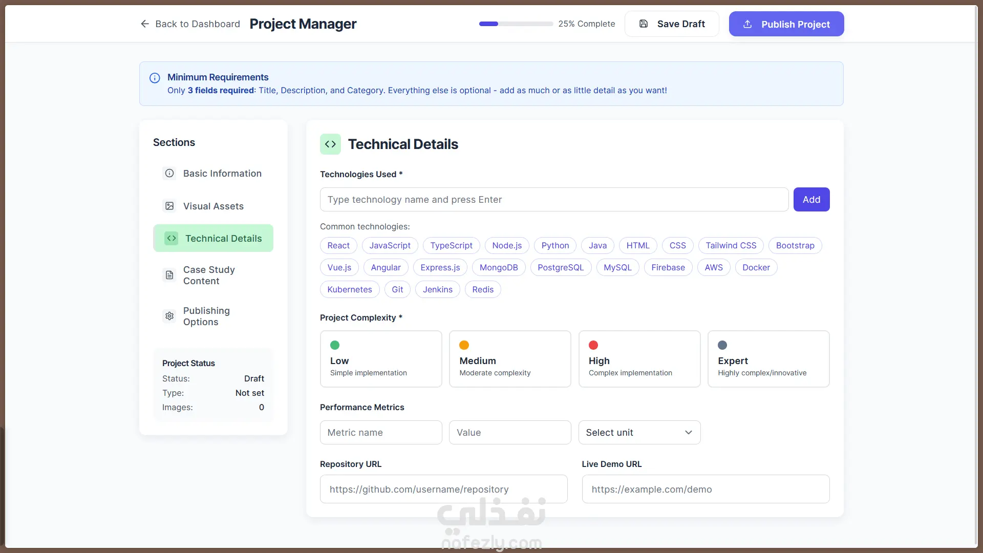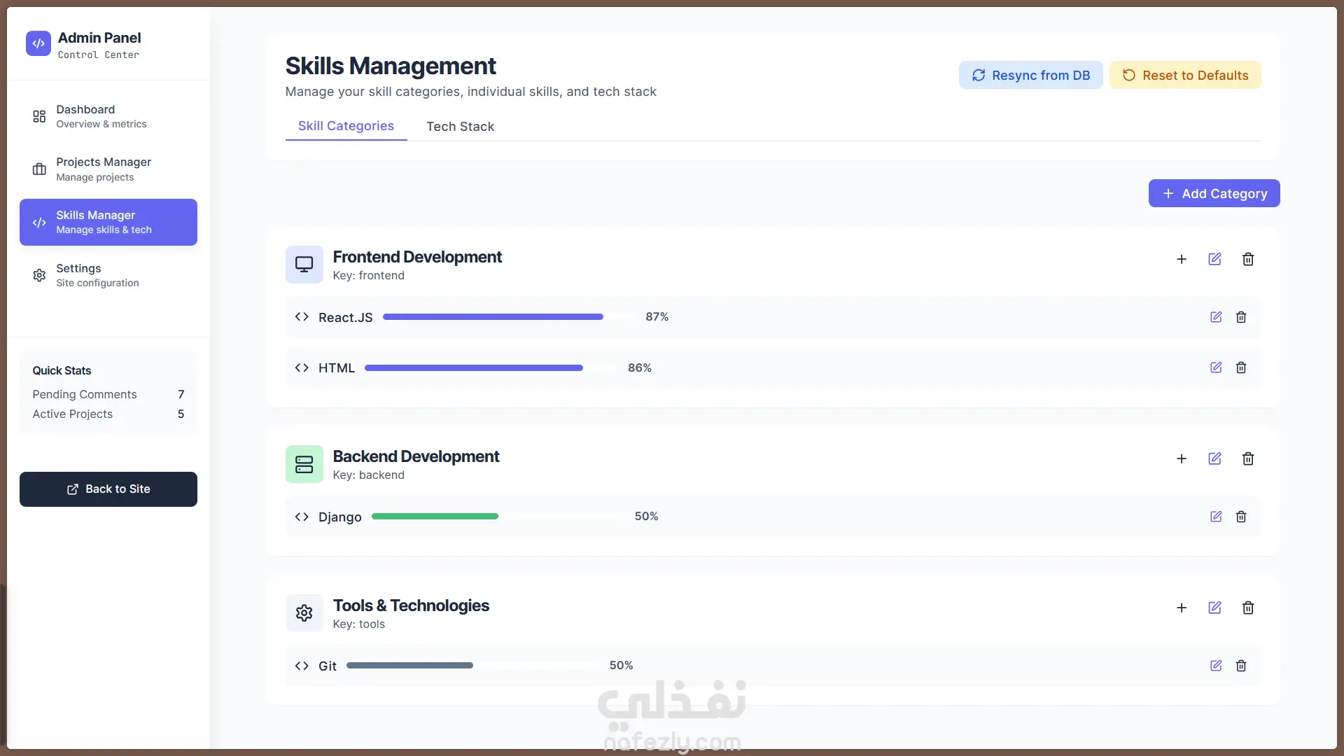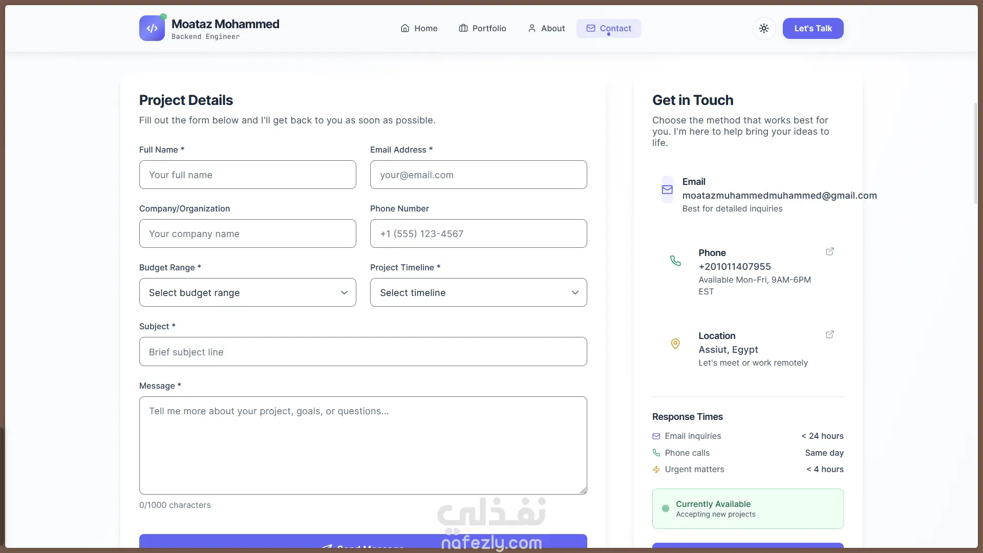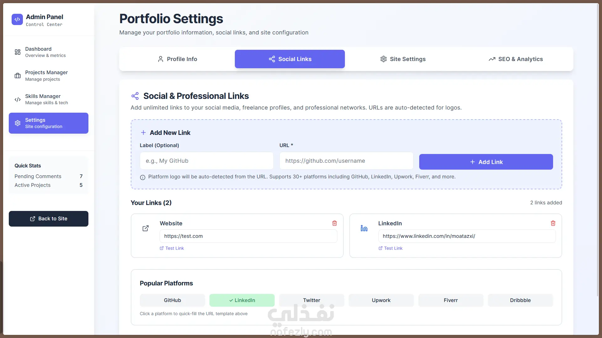 موقع بورتفوليو شخصي مبني كتطبيق Full-Stack يهدف إلى عرض المشاريع والمهارات بطريقة احترافية، مع نظام إدارة محتوى مخصص (Custom CMS) للتحكم الكامل في كل تفاصيل الموقع بدون الاعتماد على أدوات جاهزة. المشروع معمول ليكون أكثر من مجرد صفحة تعريفية، بل منصة ديناميكية قابلة للتوسع تعكس طريقة تفكيري في بناء واجهات حديثة، تنظيم المحتوى، وإدارة البيانات بشكل آمن ومرن. الواجهة الأمامية مبنية باستخدام React.js مع تصميم حديث ومتجاوب، بينما تم الاعتماد على Supabase كـ Backend متكامل لإدارة قاعدة البيانات، المصادقة، والتخزين. الواجهة العامة (Public Portfolio) توفر تجربة تفاعلية لزوار الموقع: قسم Hero ديناميكي مع حركات وانتقالات سلسة عرض المهارات باستخدام عناصر تفاعلية توضح مستوى الإتقان معرض مشاريع قابل للتصفية مع صفحات تفاصيل (Case Studies) نماذج تواصل متعددة (مشاريع – تعاون – تواصل عام) دعم روابط اجتماعية غير محدودة مع اكتشاف تلقائي للأيقونات دعم الوضع الليلي (Dark Mode) مع انتقالات ناعمة تصميم متجاوب بالكامل مع جميع الشاشات Skeleton Loaders لتحسين تجربة المستخدم أثناء التحميل لوحة التحكم (Admin Dashboard) تم بناء لوحة تحكم مخصصة لإدارة الموقع بالكامل: واجهة إدارية متجاوبة مع Sidebar منظم إدارة إعدادات الموقع والملف الشخصي (الاسم، المسمى الوظيفي، النبذة، الصورة، السيرة الذاتية) التحكم في الهوية البصرية (الألوان، اللوجو، الأيقونة) إعدادات SEO (Meta Tags, Analytics) إدارة المهارات وتصنيفها مع تحديد مستوى الإتقان وترتيبها إدارة المشاريع بشكل متقدم: إضافة صور وميديا تحديد التقنيات المستخدمة والمؤشرات كتابة Case Study (المشكلة – الحل – النتيجة) نظام Draft / Published إعدادات SEO لكل مشروع الجوانب التقنية في المشروع: استخدام Supabase (PostgreSQL) مع تفعيل Row Level Security لتأمين البيانات على مستوى قاعدة البيانات إدارة الحالة العامة باستخدام React Context API دعم التحديثات اللحظية (Real-time Subscriptions) نظام حفظ تلقائي (Auto-save) لمنع فقدان البيانات Error Boundaries للتعامل مع الأخطاء بشكل آمن تحسين محركات البحث (SEO) باستخدام Meta Tags و OpenGraph تحسين الأداء عبر Lazy Loading و Code Splitting ما يركز عليه المشروع: بناء CMS مخصص بدل الاعتماد على حلول جاهزة تصميم واجهات حديثة قابلة لإعادة الاستخدام تأمين البيانات من مستوى قاعدة البيانات تنظيم الكود وقابلية الصيانة والتوسع تقديم تجربة مستخدم احترافية وسلسة