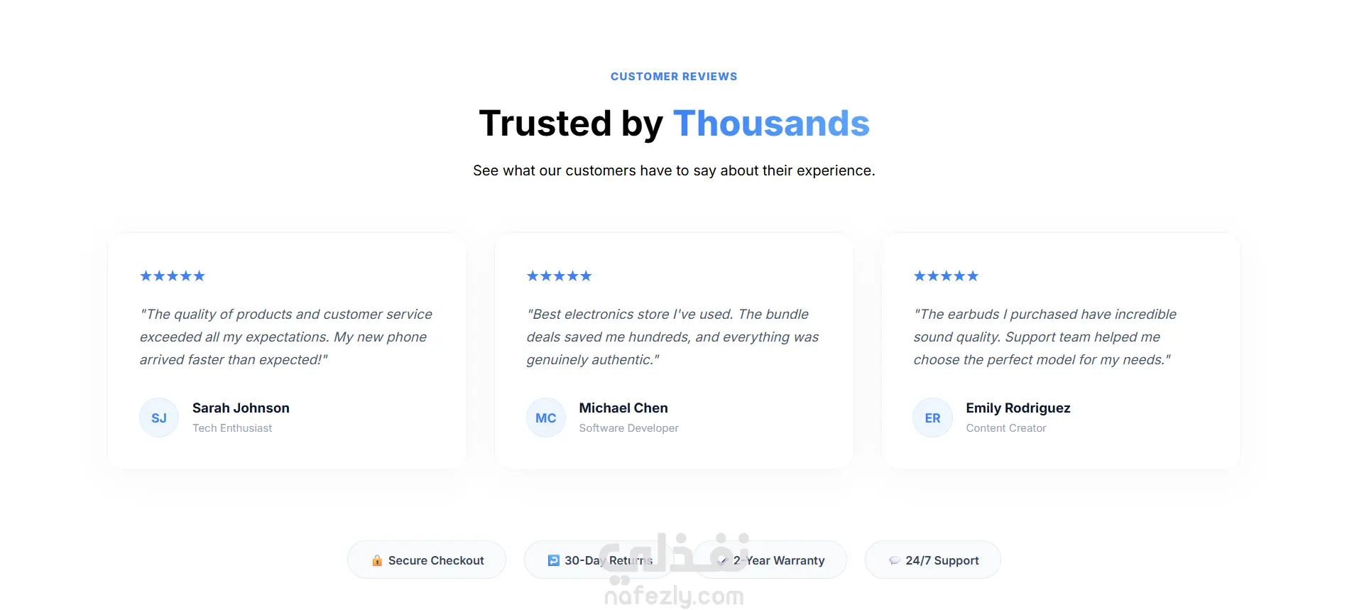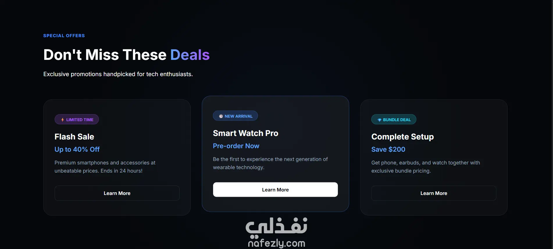 مناسبة لمتاجر الإلكترونيات أو أي مشروع يحتاج صفحة بيع فعّالة.