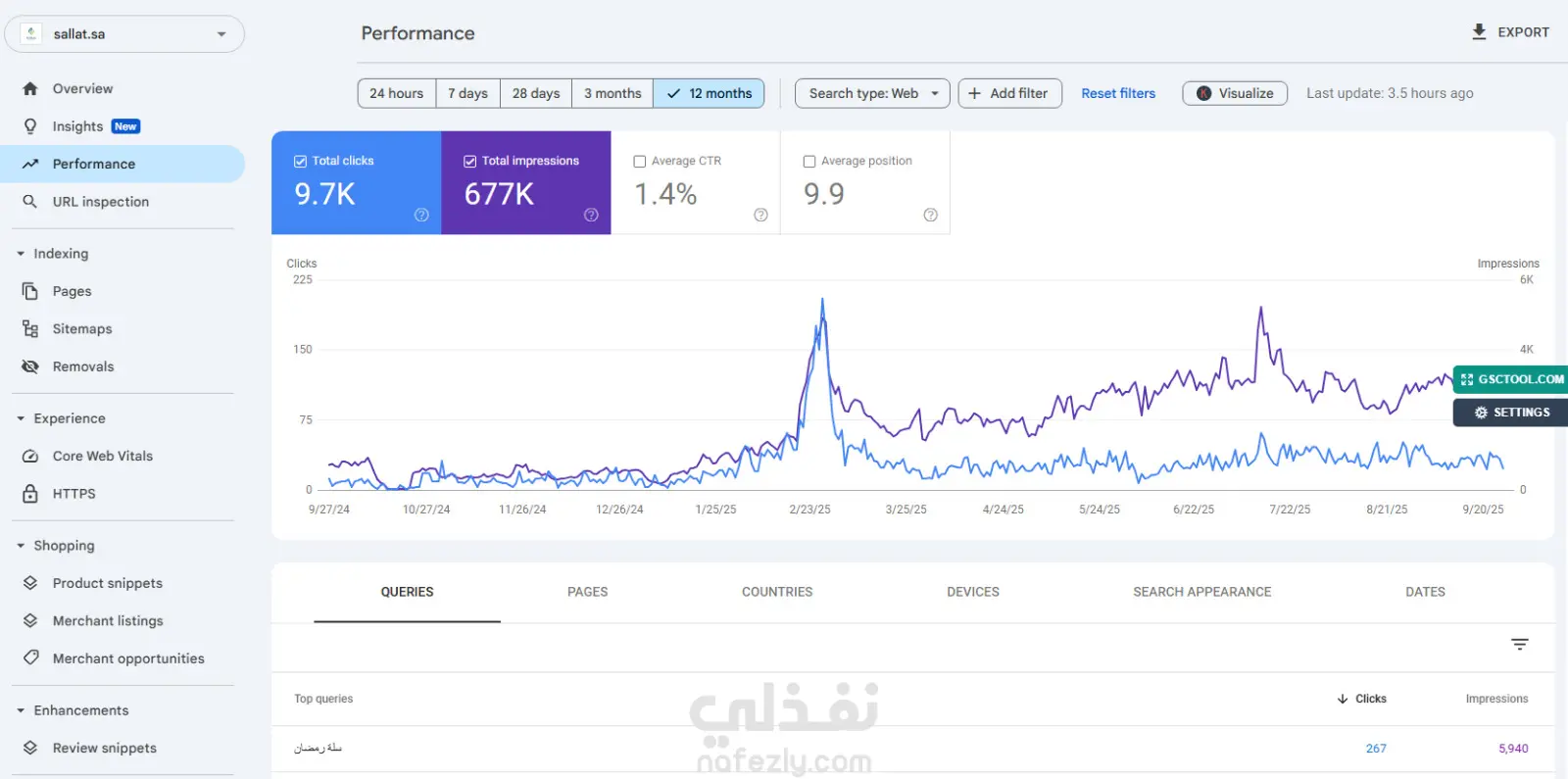 خلال عام من إدارة وتحسين SEO لموقع Sallat، ركزت على رفع ترتيب الموقع في نتائج البحث وزيادة الزيارات العضوية بطريقة مدروسة ومستدامة.