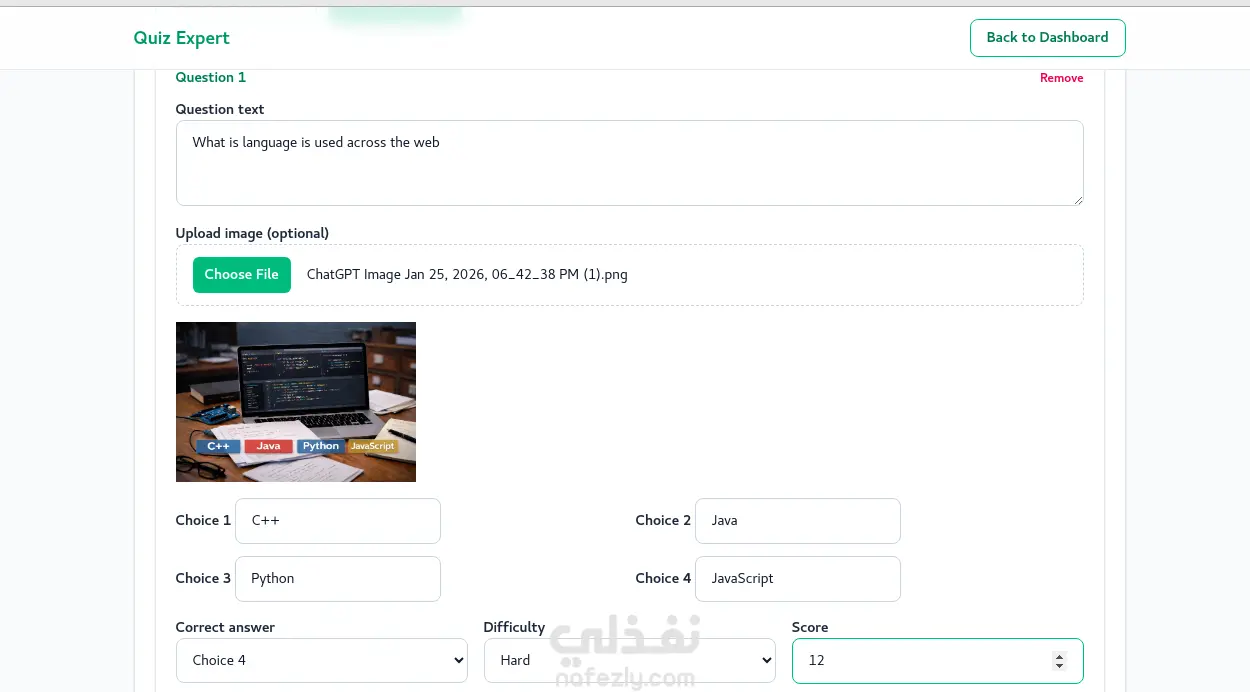 QuizExpert هو تطبيق ويب تفاعلي لإدارة وعرض الاختبارات الإلكترونية، يهدف إلى تقديم تجربة سهلة وسريعة للمستخدمين للإجابة على الأسئلة ومتابعة تقدمهم داخل نظام منظم وحديث.