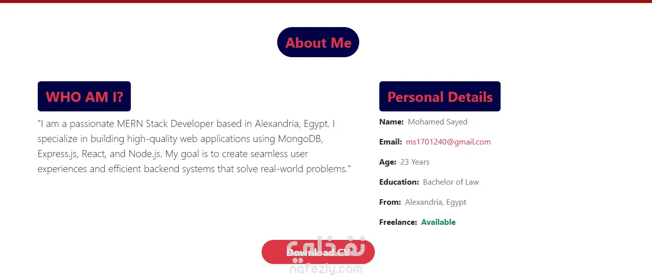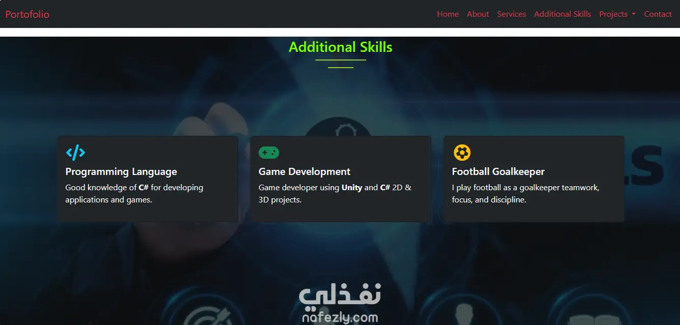تصميم وتطوير موقع "معرض أعمال" شخصي متكامل يتميز بالسرعة والاستجابة الكاملة (Fully Responsive). تم التركيز في هذا المشروع على تقديم تجربة مستخدم سلسة (UX) تعكس المهارات التقنية والاحترافية.