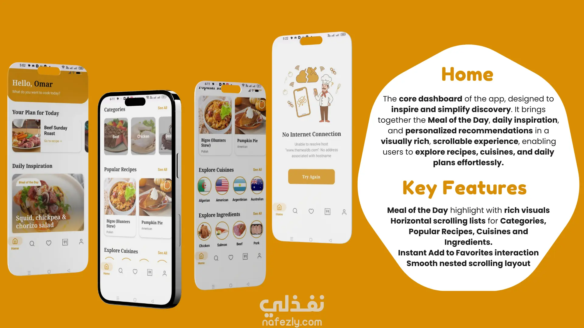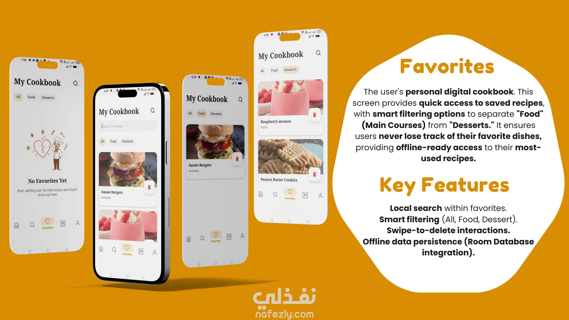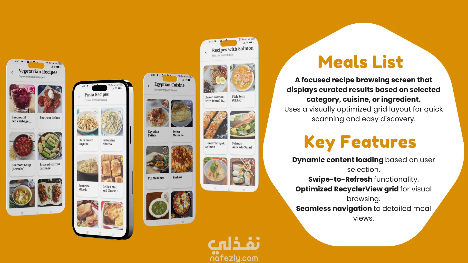 تطبيق Cheffy هو حل تقني متكامل تم تصميمه وتطويره لمساعدة المستخدمين على إدارة مطبخهم بذكاء. يجمع التطبيق بين اكتشاف الوصفات العالمية، وتخطيط الوجبات الأسبوعية، وإدارة المفضلة، مع تجربة مستخدم (UX) سلسة وعصرية. تم بناء هذا التطبيق ليكون نموذجاً للتطبيقات القابلة للتوسع (Scalable)، مع التركيز على الأداء العالي (High Performance) والعمل بدون إنترنت (Offline Support). 🌟 المميزات الرئيسية التي تم تنفيذها: تجربة مستخدم تفاعلية (Onboarding & UI): تصميم شاشات ترحيبية وتفاعلية باستخدام Lottie Animations و Transitions ناعمة لجذب المستخدم من اللحظة الأولى. نظام تخطيط الوجبات (Weekly Planner): أداة متطورة تمكن المستخدم من جدولة وجباته على مدار الأسبوع وحفظها محلياً. البحث والاكتشاف الذكي: محرك بحث متقدم يتيح الفلترة حسب (اسم الوجبه، الدولة، المكونات، التصنيف) باستخدام شرائح تفاعلية (Chips). دعم العمل دون إنترنت (Offline First): بفضل استخدام Room Database، يمكن للمستخدم تصفح وجباته المفضلة وخطته الأسبوعية دون الحاجة لاتصال بالإنترنت. المزامنة السحابية (Cloud Sync): ربط التطبيق بـ Firebase لمزامنة البيانات، مما يسمح للمستخدم باستعادة مفضلاته وخططه عند تسجيل الدخول من أي جهاز. عرض التفاصيل والفيديو: مشغل فيديو مدمج (Embedded) لعرض خطوات الطهي، مع واجهة تفاعلية (Collapsing Toolbar). نظام حماية وتسجيل دخول: دعم التسجيل عبر Google، Facebook، أو البريد الإلكتروني مع التحقق من البيانات (Validation). 🛠 الجانب التقني (لماذا تختارني لمشروعك القادم؟): هذا المشروع ليس مجرد واجهات، بل تم بناؤه بأساس برمجي متين يضمن سهولة الصيانة والتطوير المستقبلي: لغة البرمجة: Java (Native Android Development). الهيكلة (Architecture): تم اعتماد نمط MVP مع Repository Pattern لفصل الكود وضمان نظافته (Clean Code). إدارة البيانات: تكامل مع Retrofit للتعامل مع الـ APIs، و RxJava للبرمجة التفاعلية وإدارة العمليات غير المتزامنة بكفاءة عالية. قواعد البيانات: دمج بين Room (للتخزين المحلي) و Firestore (للتخزين السحابي). التصميم: تطبيق معايير Material Design 3 لضمان شكل جمالي عصري. 💡 ما يمكنني تقديمه لك: من خلال هذا المشروع، أثبت قدرتي على تحويل الأفكار إلى تطبيقات أندرويد متكاملة، سريعة، وخالية من الأخطاء. سواء كنت تحتاج لتطبيق متجر إلكتروني، تطبيق خدمي، أو فكرة ريادية، يمكنني بناء هيكلية تضمن لك تطبيقاً ناجحاً وقابلاً للمنافسة في السوق.
