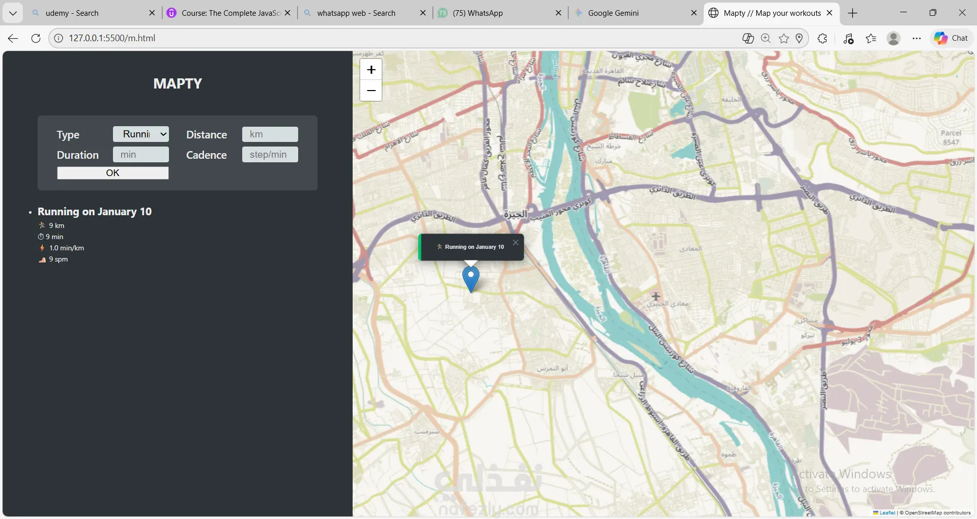 تطبيق ويب لتسجيل التمارين الرياضية وتحديد المواقع الجغرافية باستخدام JavaScript و Leaflet