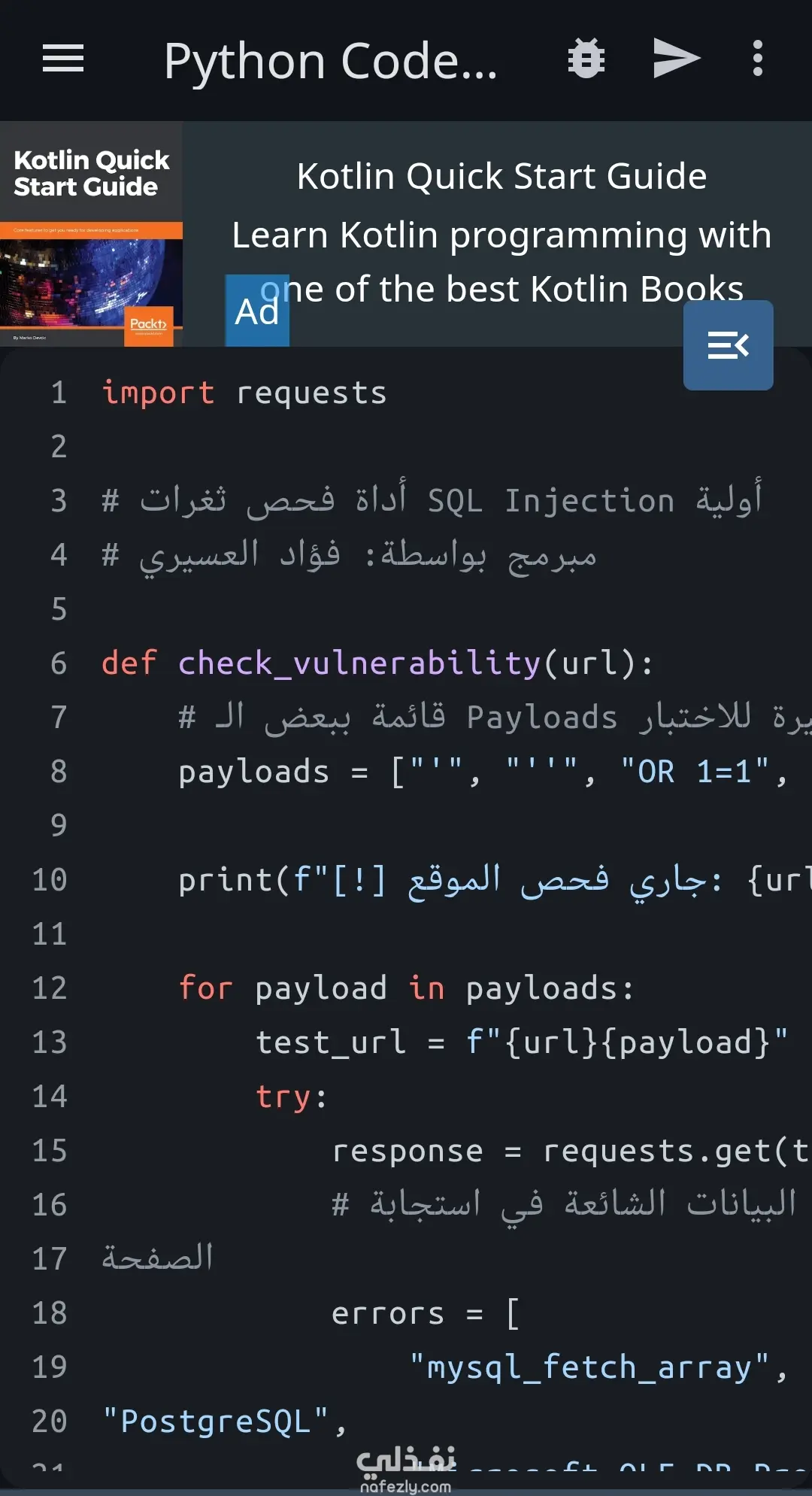 لقد قمت بتطوير سكربت برمجي متقدم بلغة Python لأتمتة فحص تطبيقات الويب واكتشاف الثغرات الأمنية الشائعة. تشمل الأداة الميزات التالية: فحص المنافذ المفتوحة: للتعرف على نقاط الدخول المحتملة في الشبكة. تحليل ترويسات HTTP: للكشف عن أي سوء إعدادات أمنية. كشف ثغرات SQL Injection: تحديد نقاط الضعف البرمجية التي قد تتيح حقن قواعد البيانات. دعم دورة حياة التطوير (SDLC): صُممت الأداة لمساعدة المطورين في تأمين مشاريعهم خلال المراحل الأولية من البرمجة. المهارات المتعلقة بالعمل: بايثون (Python Expert): المهارة الأساسية في بناء السكربت. الأمن السيبراني (Cybersecurity): المعرفة بالمنهجيات الهجومية لبناء حلول دفاعية. Vulnerability Assessment: تقييم نقاط الضعف في الأنظمة. برمجة قواعد البيانات: لفهم ومعالجة ثغرات SQL. إدارة الشبكات: تحليل حركة المرور وفهم بروتوكولات TCP/IP. أستخدم هذه المهارات البرمجية لضمان أمن المتاجر الإلكترونية التي أديرها (Shopify & Salla)، وحماية بيانات العملاء من أي محاولات اختراق عبر فحص الثغرات بشكل دوري.