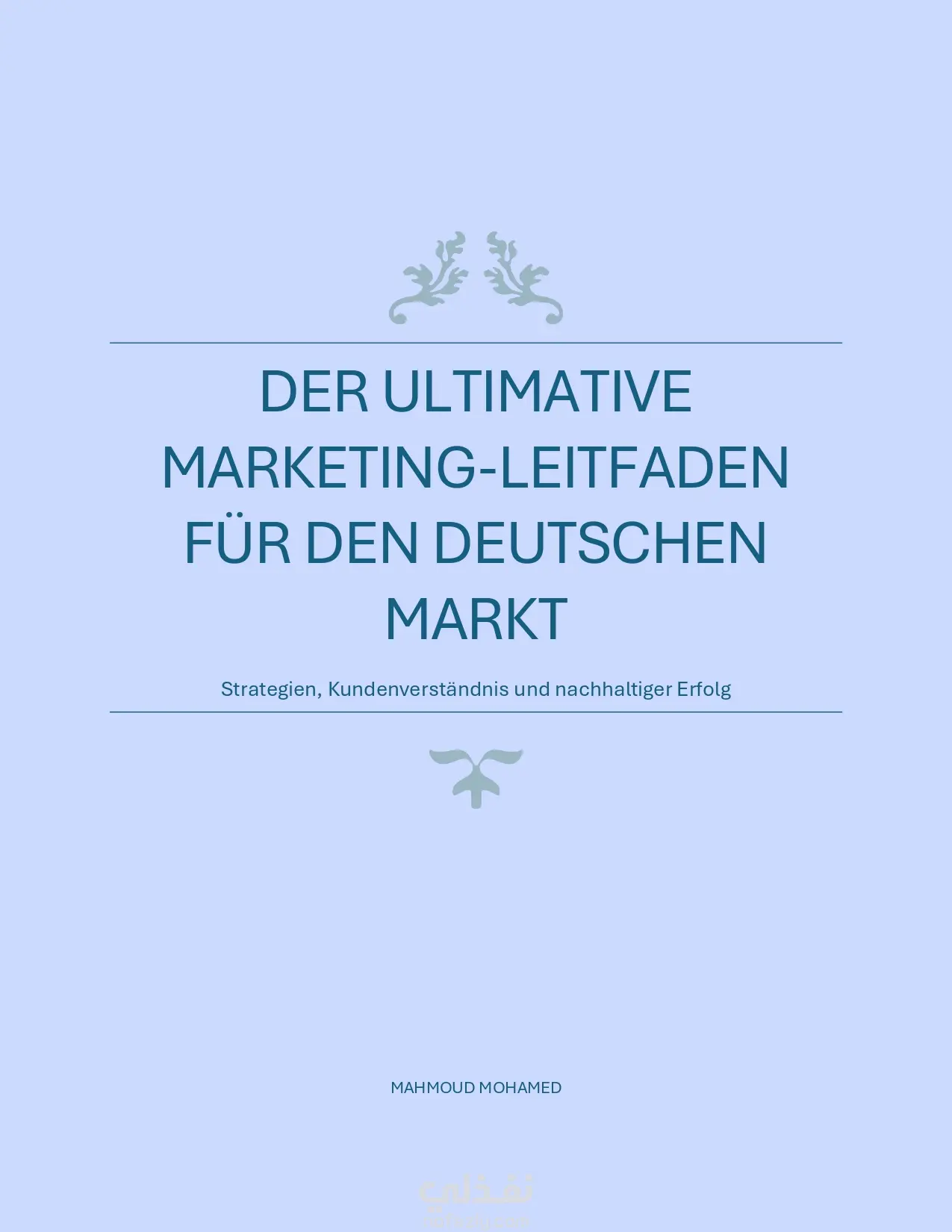 مشروع كتاب تسويقي شامل مكتوب باللغة الألمانية، يوضح للشركات الناشئة والدولية كيفية دخول السوق الألماني بنجاح. العمل يتكون من 8 فصول مترابطة تغطي تحليل السوق، وصف المنتج، استراتيجيات التسويق، تقسيم العملاء، نقاط البيع القوية، والدعوة لاتخاذ إجراء، وصولًا إلى الخاتمة.