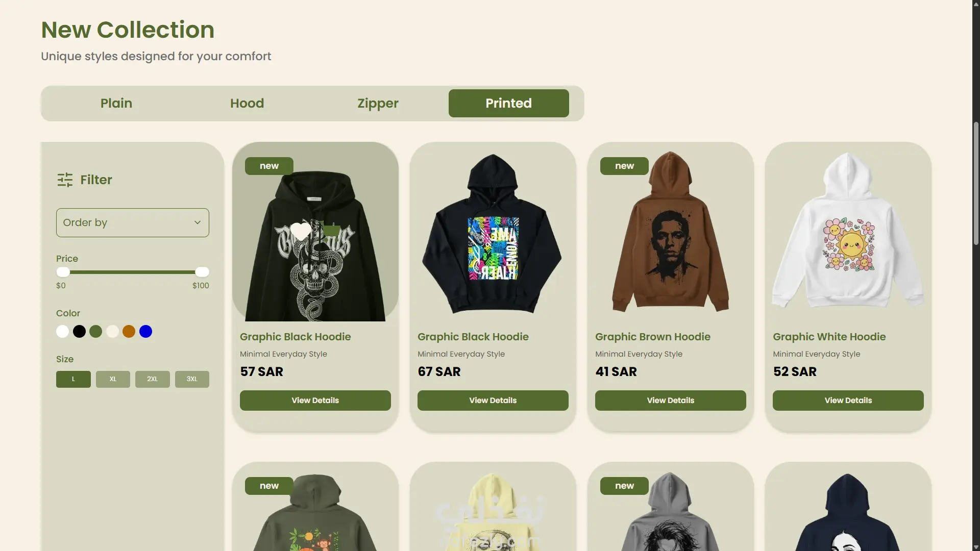 Hoody هو متجر إلكتروني متكامل لعرض وبيع الملابس بواجهة أنيقة وسريعة الاستجابة.