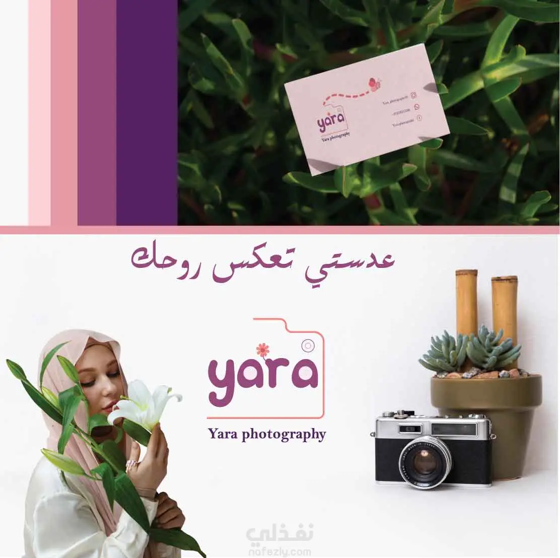 تصميم هوية بصرية متكاملة للمصورة الفوتوغرافية "يارا"، بهدف إبراز أسلوبها الفني الفريد، وتعزيز تواجدها الاحترافي في سوق التصوير، سواء عبر الإنترنت (السوشيال ميديا) أو من خلال المطبوعات.
